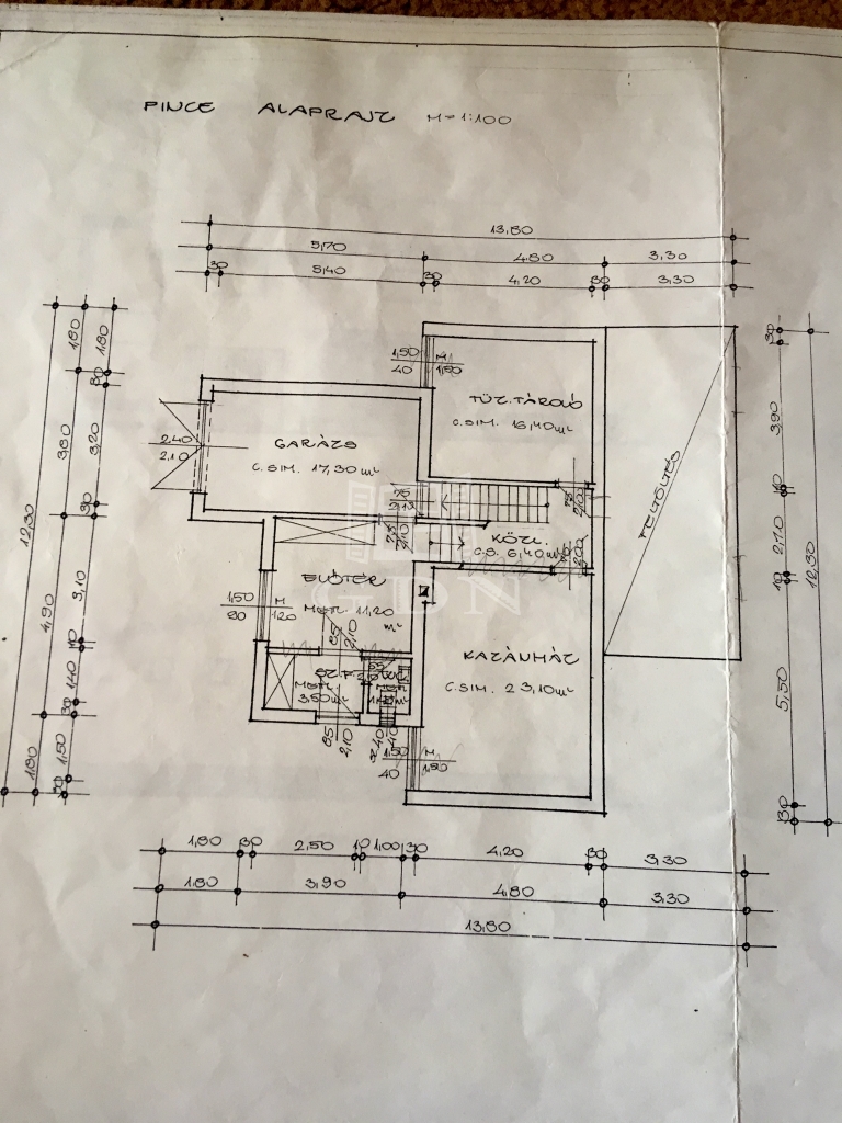 A garázsból közvetlen lejárat nyílik a közel 70 m²-es szuterénbe, amely a ház szinte teljes alapterületén végigfut, így rengeteg tárolási lehetőséget biztosít.