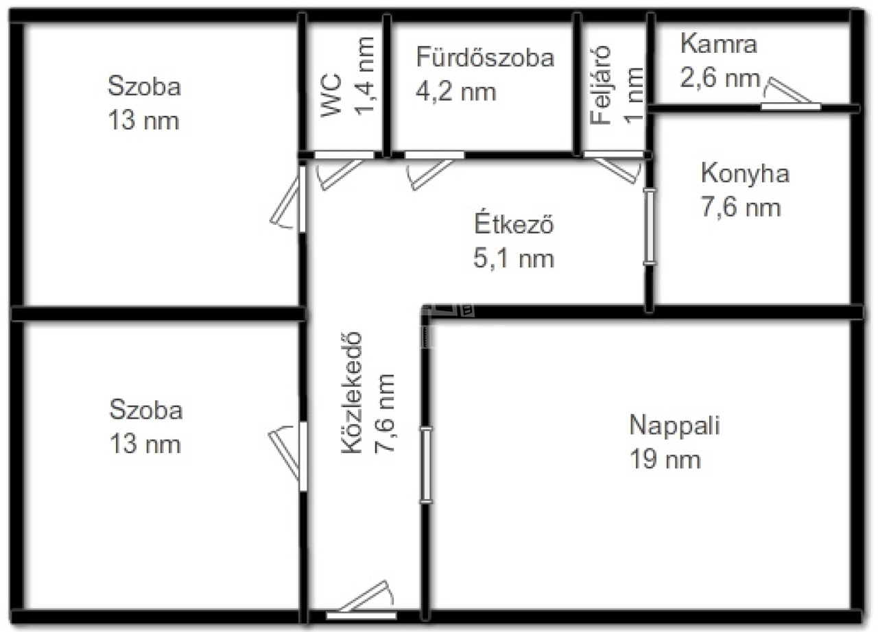 - 2 külön nyíló, egyenként 13 nm-es szoba