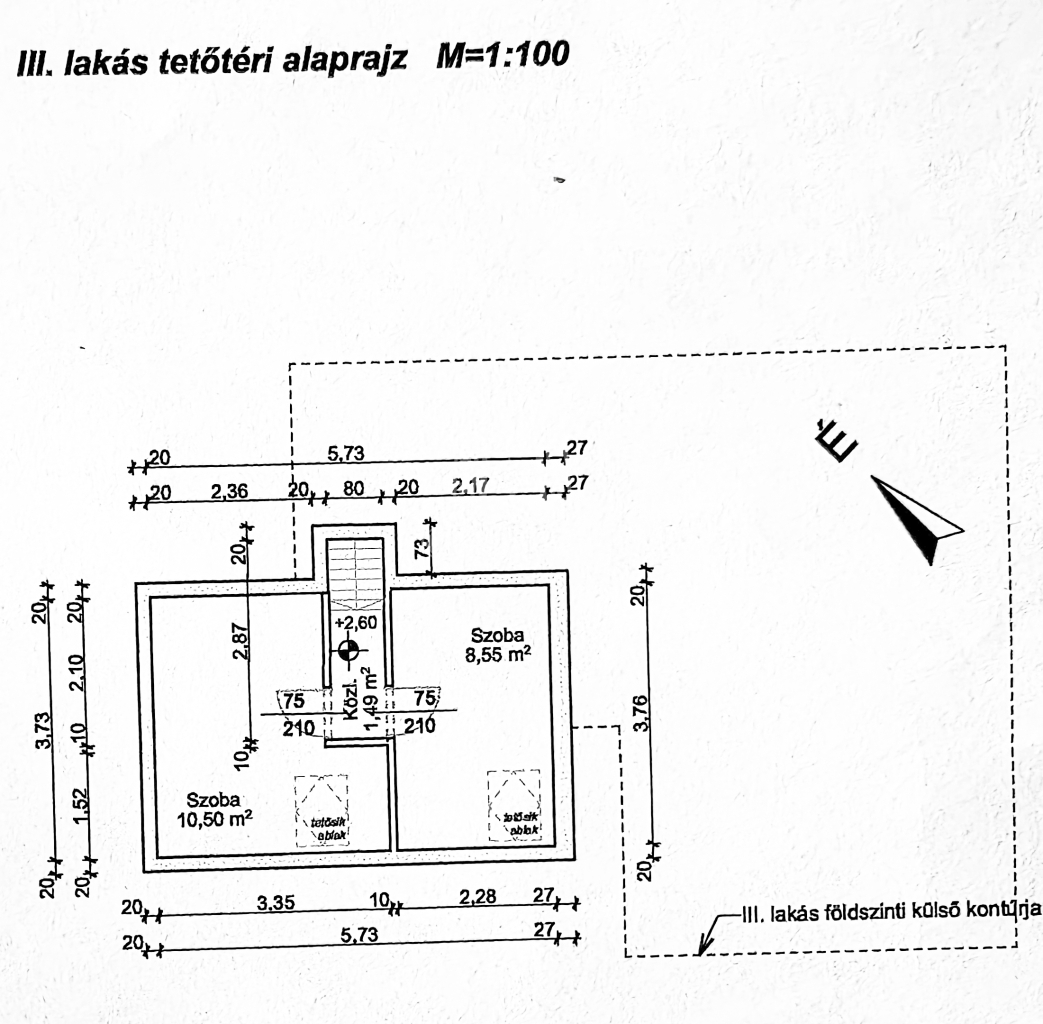 Az ingatlan egy nagy családi ház felújításával együtt lett 3 db lakássá felosztva (ügyvédi megosztással), minek keretén belül minden lakáshoz tartozik egy fedett lemezgarázs (helyszínrajzon 3-mas) illetve egy 100 nm-körüli telekrész is.