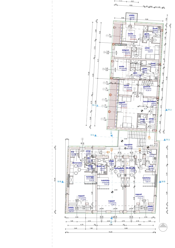 A projekt 5.-ös számú, első emeleti lakása 79,86 m2 lakóterületű, belső kétszintes kialakítású.