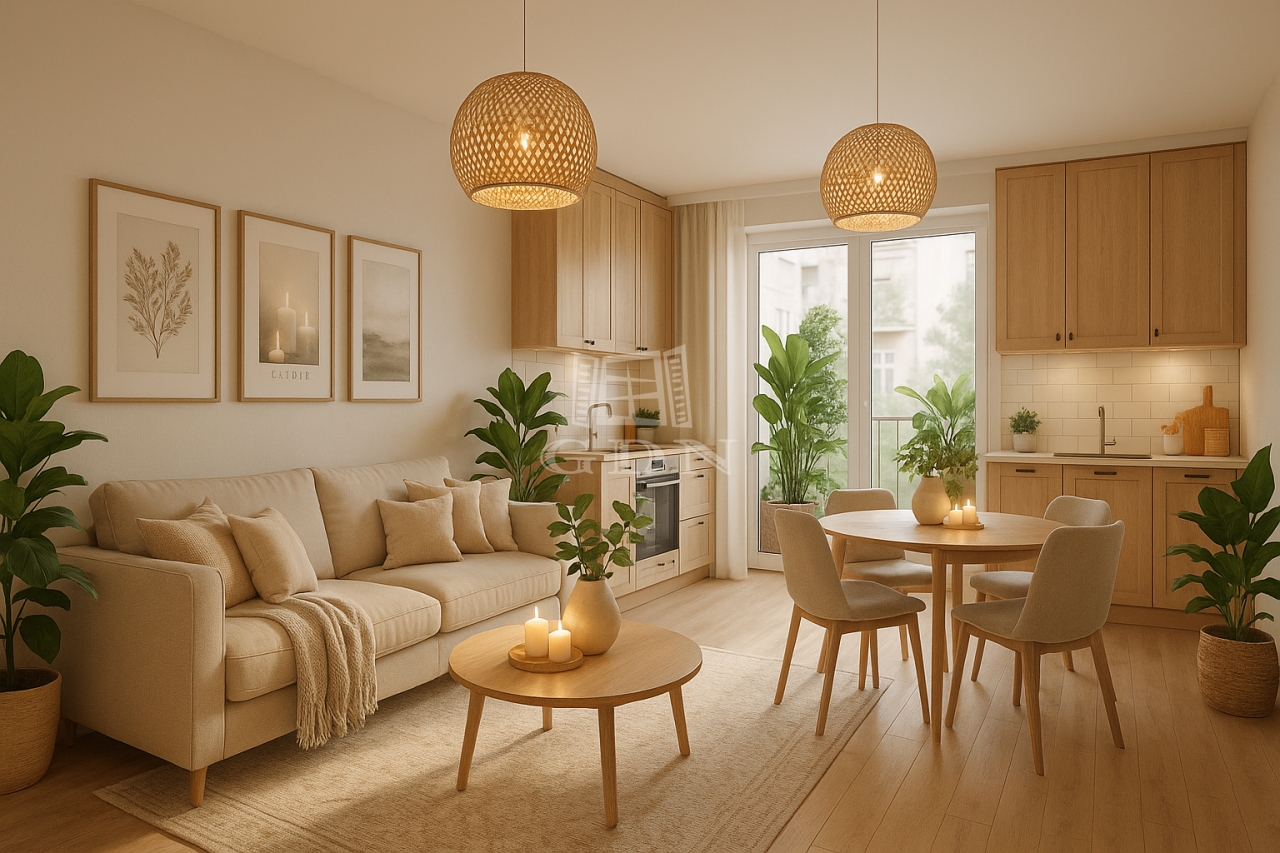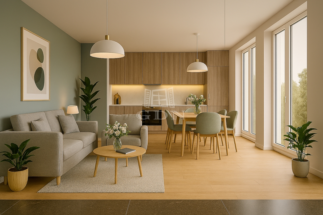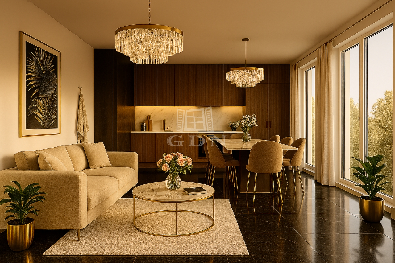 A jól átgondolt terveknek köszönhetően a lakás elosztása kiváló, az életterek kialakításánál a funkcionalitás dominált, kényelmes teret biztosítva leendő lakóinak.