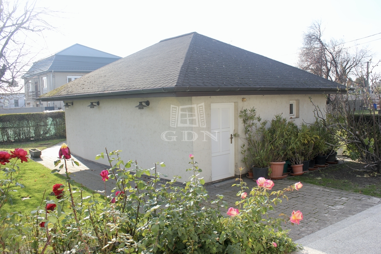 A háromszintes, igényesen megépített és folyamatosan karbantartott ház kialakítása rendkívül praktikus. A földszinten található egy előtér, WC, kamra/tárolóhelyiség, konyha, melyben beépített Miele gépek találhatóak, ezen felül egy étkezővel egybekötött nappali, egy gardrób szoba, fürdőszoba illetve egy hálószoba. Az emeleti lakótérben szintén megtalálható egy nappali rész, két hálószobával egy fürdőszobával és két beépíthető tetőtéri szobával. A szuterén szinten található a műhely, mosókonyha, egy világos télikert, fitness terem, zuhanyzó és külön WC, valamint egy gondosan kialakított wellness részleg szaunával. A ház szobáiból és a teraszról egyaránt szép kilátás nyílik a kertre, amely kellemes, zöld környezetet biztosít a mindennapokhoz.