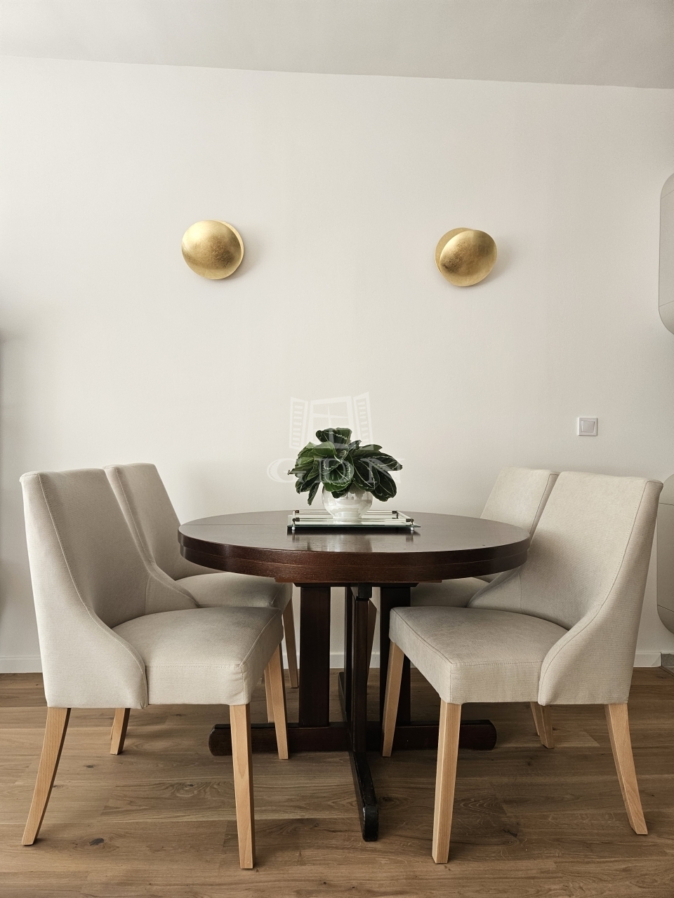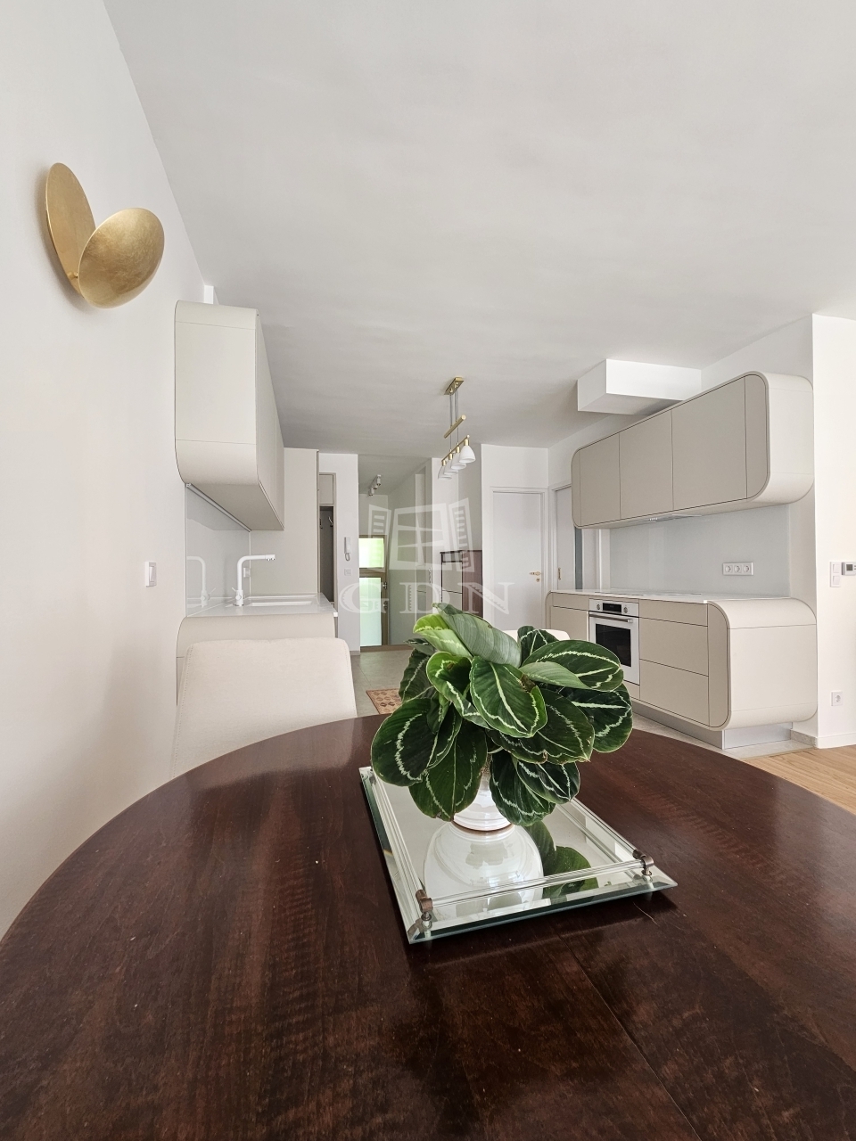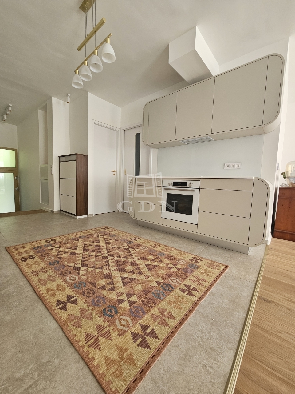 Bahaus stílus jegyekben újra gondolt lakás egyedi atmoszférával rendelkezik, ami csendes parkosított zöld környezetben található.