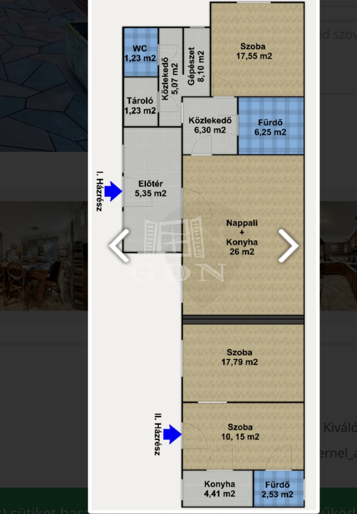 A két lakrész akár egybe is nyitható, közös fallal rendelkezik; akár külön is használható, mint jelen esetben is.