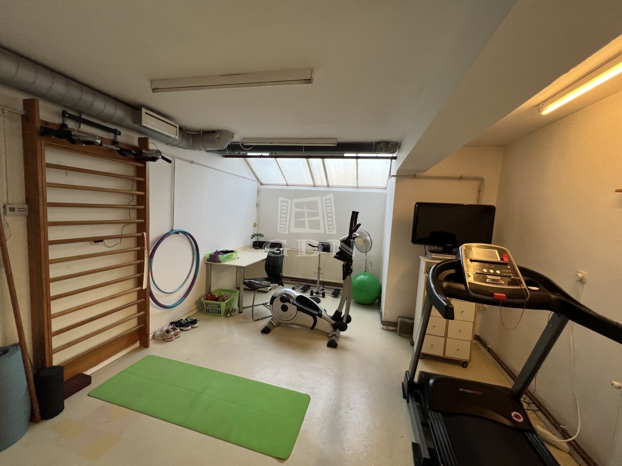 -a pinceszinten a garázs mögött található egy tároló, de a válaszfal kivétele révén a garázs alapterülete szintén nagyobbítható