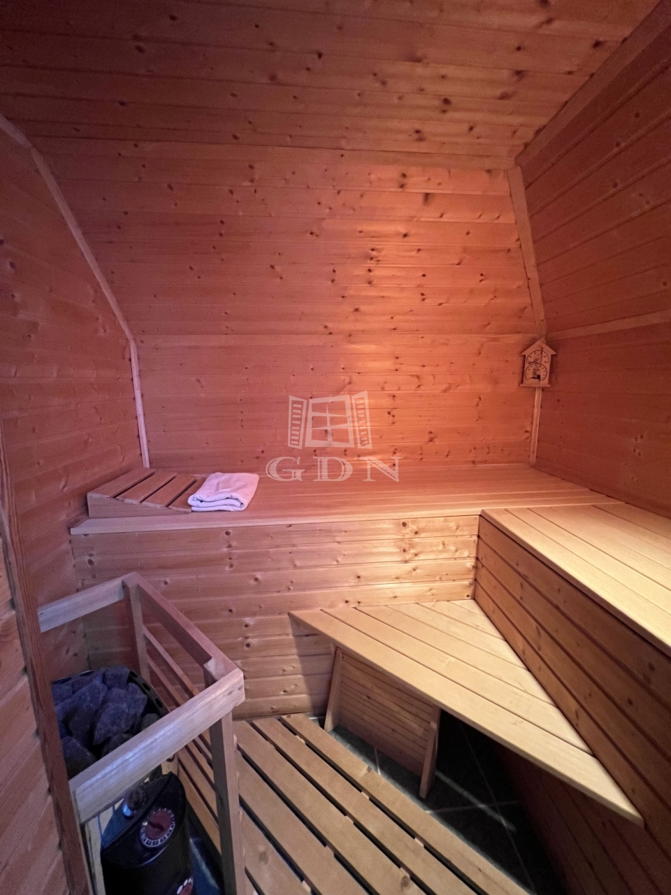 EGYÉB FELSZERELÉS ÉS INFORMÁCIÓK: távirányítható motoros kapu és garázskapu, napelemmel fedett kerti kocsibeálló, többfunkciós kemence, csapadék gyűjtő csőhálózat + 13 m3-es ciszternával, amely befogadja az épületre jutó teljes csapadékmennyiséget, automata öntözőrendszer ( ciszternáról és hálózatról egyaránt működtethető ), locsoló vízmérő a kerti csapokhoz és az öntözéshez, kapu mellett szerelőakna, kerti fatároló 12 m², alagsorban ipari teljesítményű elszívó rendszer + sűrített levegőhöz használható csőrendszer, alagsorban és földszinten is élesíthető riasztórendszer illetve megfigyelő kamerarendszer, optikai kábeles csatlakozás a telek előtti oszlophoz.