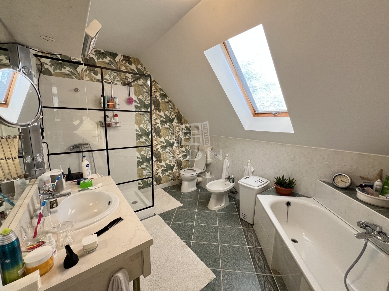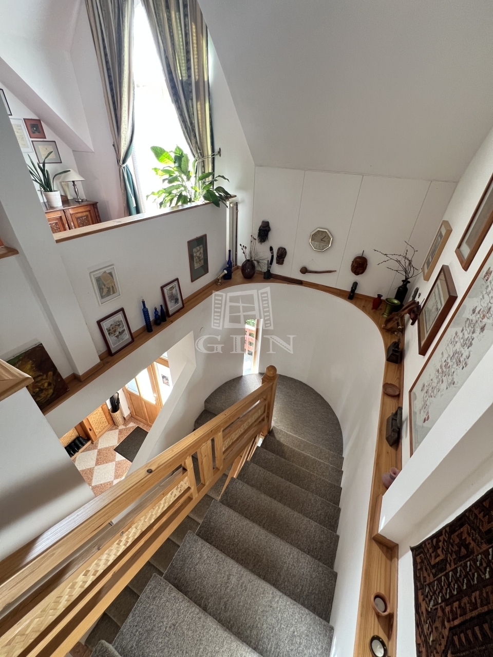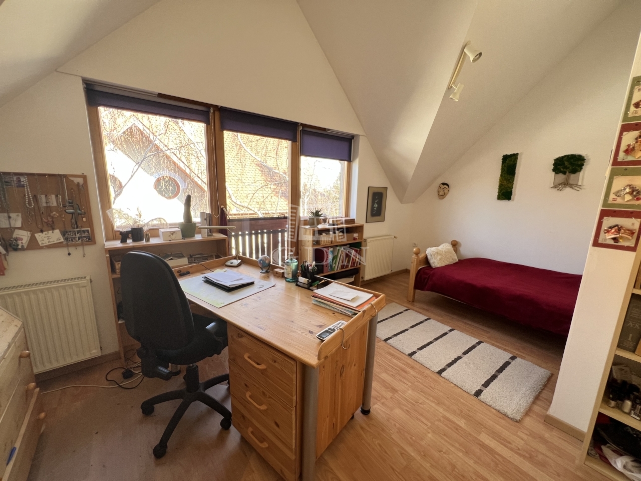 -a tetőtérben a válaszfalak gipszkarton falazatúak, így a fenti a terek könnyen változtathatóak, pl. a képeken látható fenti galérián plusz szoba is kialakítható.