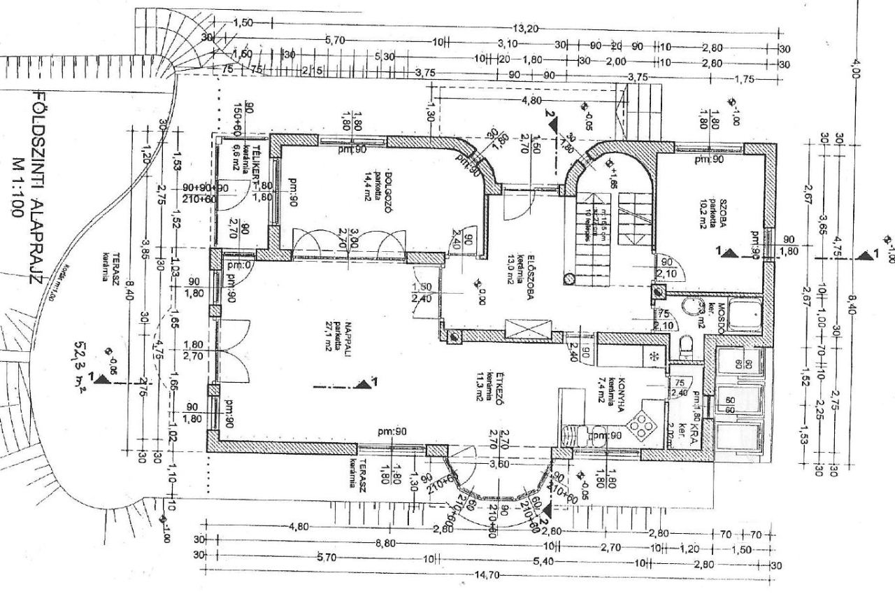 -a földszinten a nappaliból leválasztásra került egy dolgozószoba, amely az előtérből külön ajtón keresztül megközelíthető, igény szerint az eredeti állapot könnyen visszaalakítható, így a nappali alapterülete megnövelhető