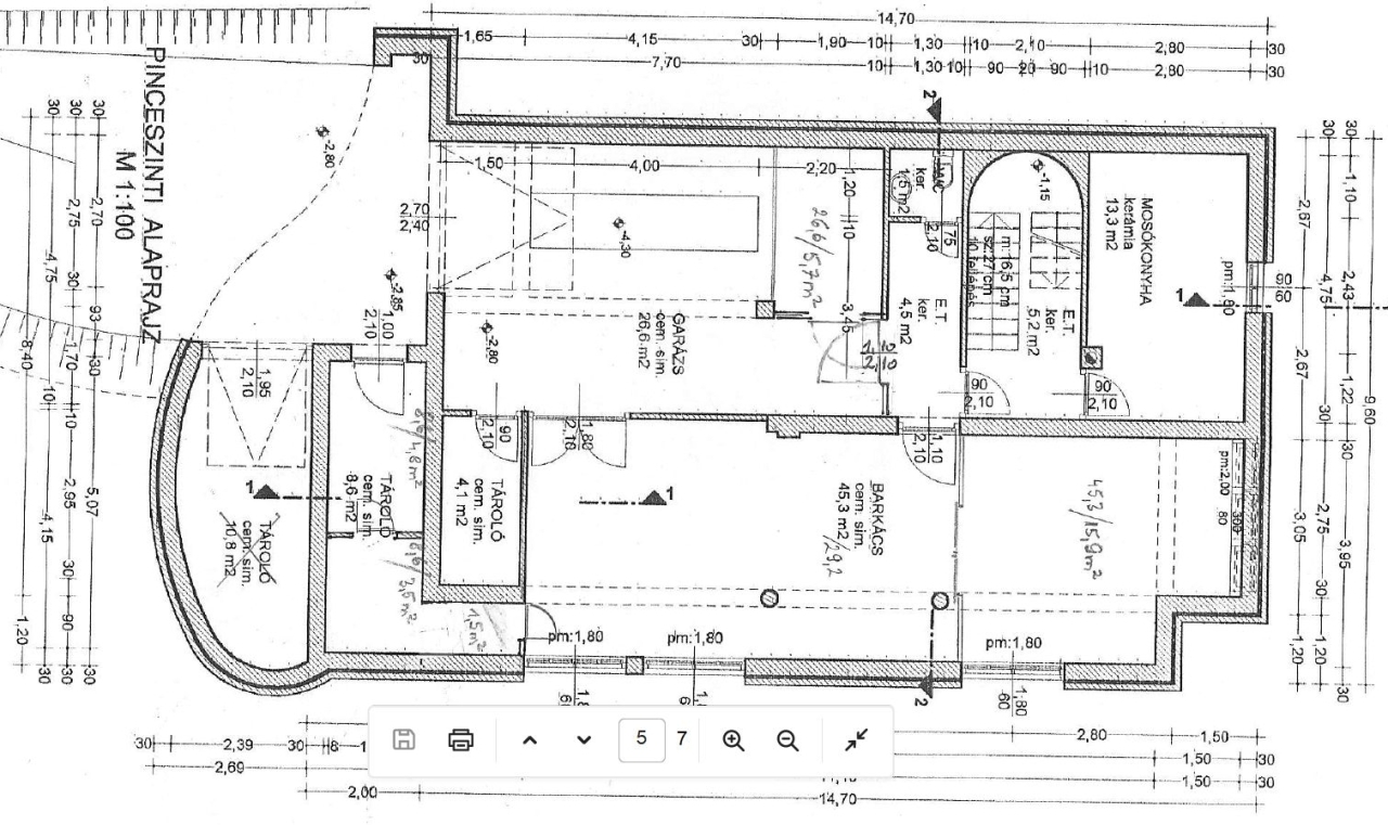 Pinceszint (félszuterén) alapterülete: + 110,6 m²