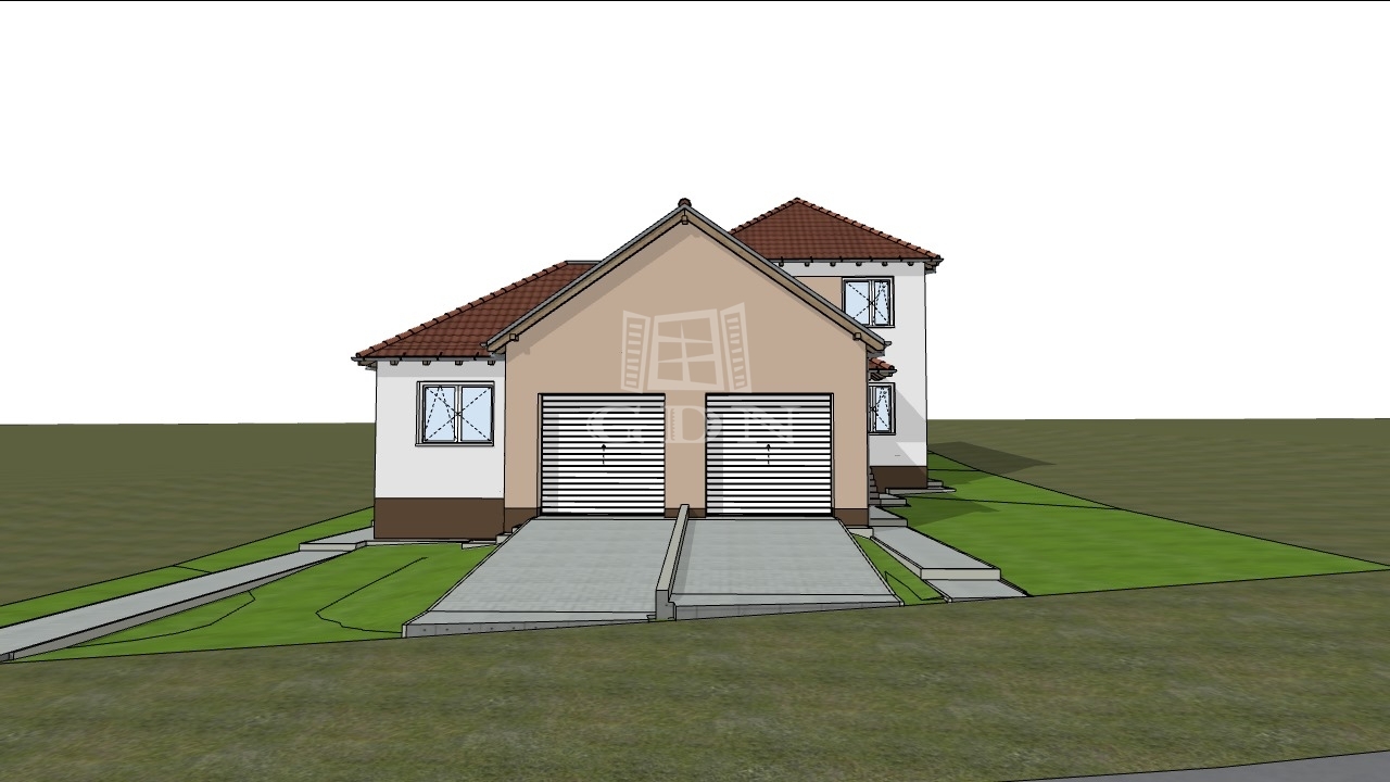 Jelen ikerház fél nettó 145 nm hasznos alapterületű két szintes épület + 20 nm-es fedett garázs, valamint 20 nm-es terasz és fedett belépő.