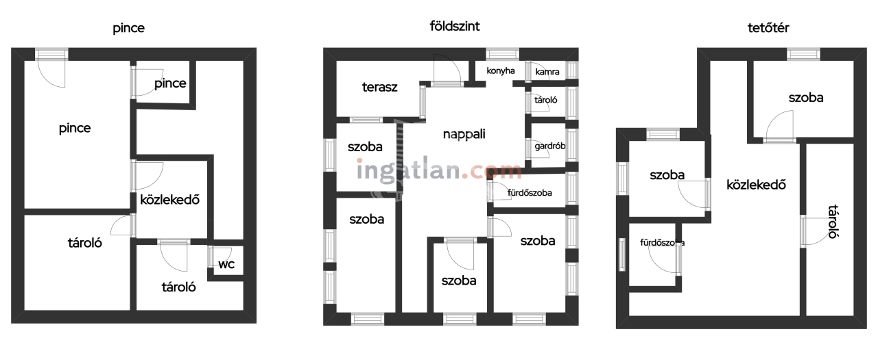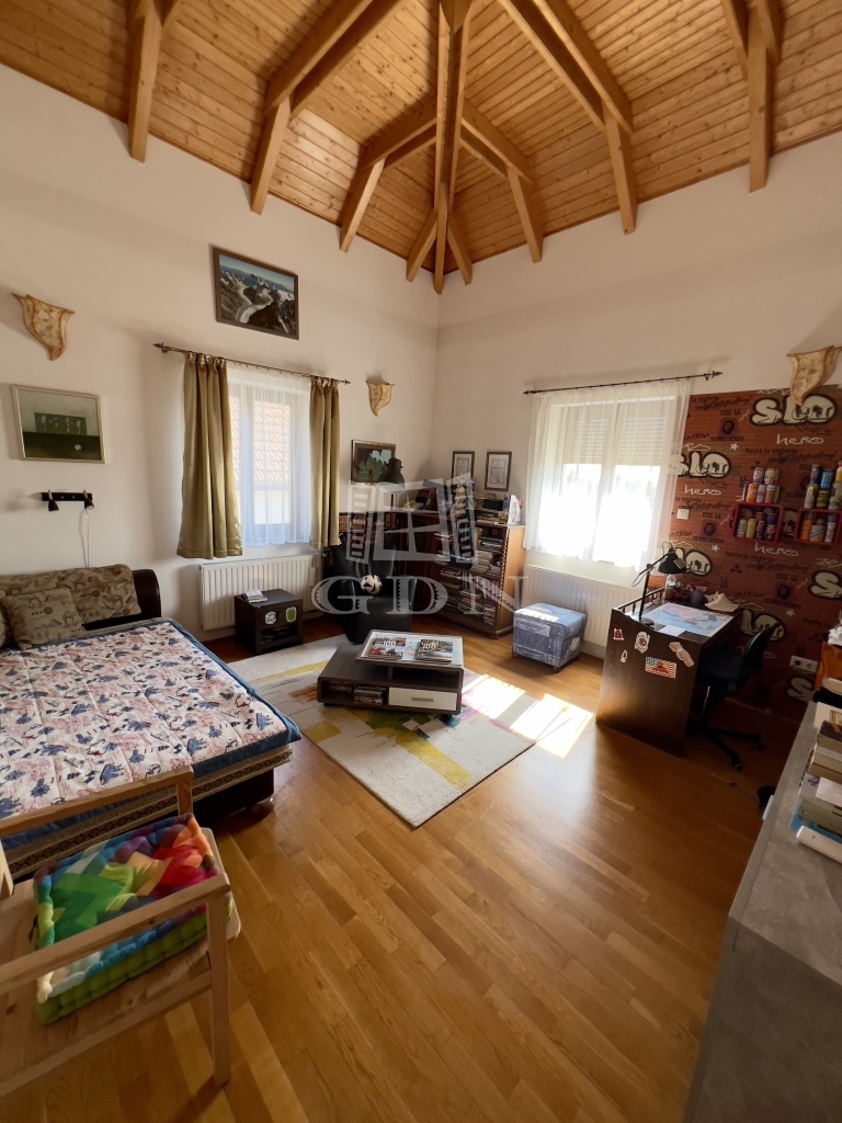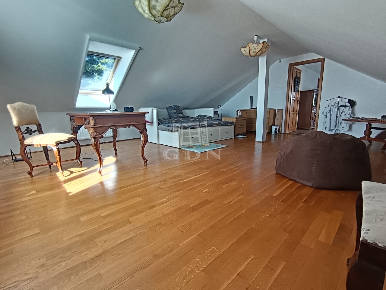 A beépített tetőtérben 2 szoba, fürdőszoba, tároló (melyből terjedelmes gardrób lehetne bepolcozást követően), és egy tágas közlekedő (melyből akár egy második nappali is kialakítható) van.
