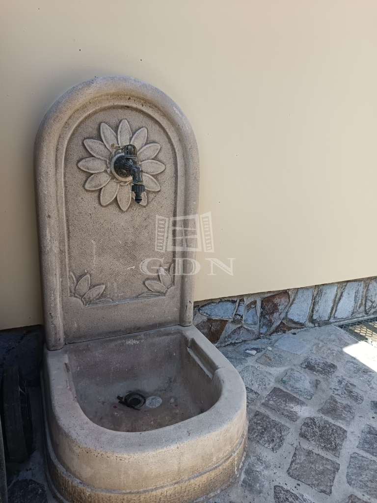 A ház előkertes, csendes környéken található. Telek rendezett, füves, gyümölcsfákkal tarkított. Automata öntözőrendszerrel, és 62 méter mély, bevizsgált ivóvízű fúrt kúttal, továbbá 2 x 6 m³-es esővízgyűjtő tartállyal rendelkezik.