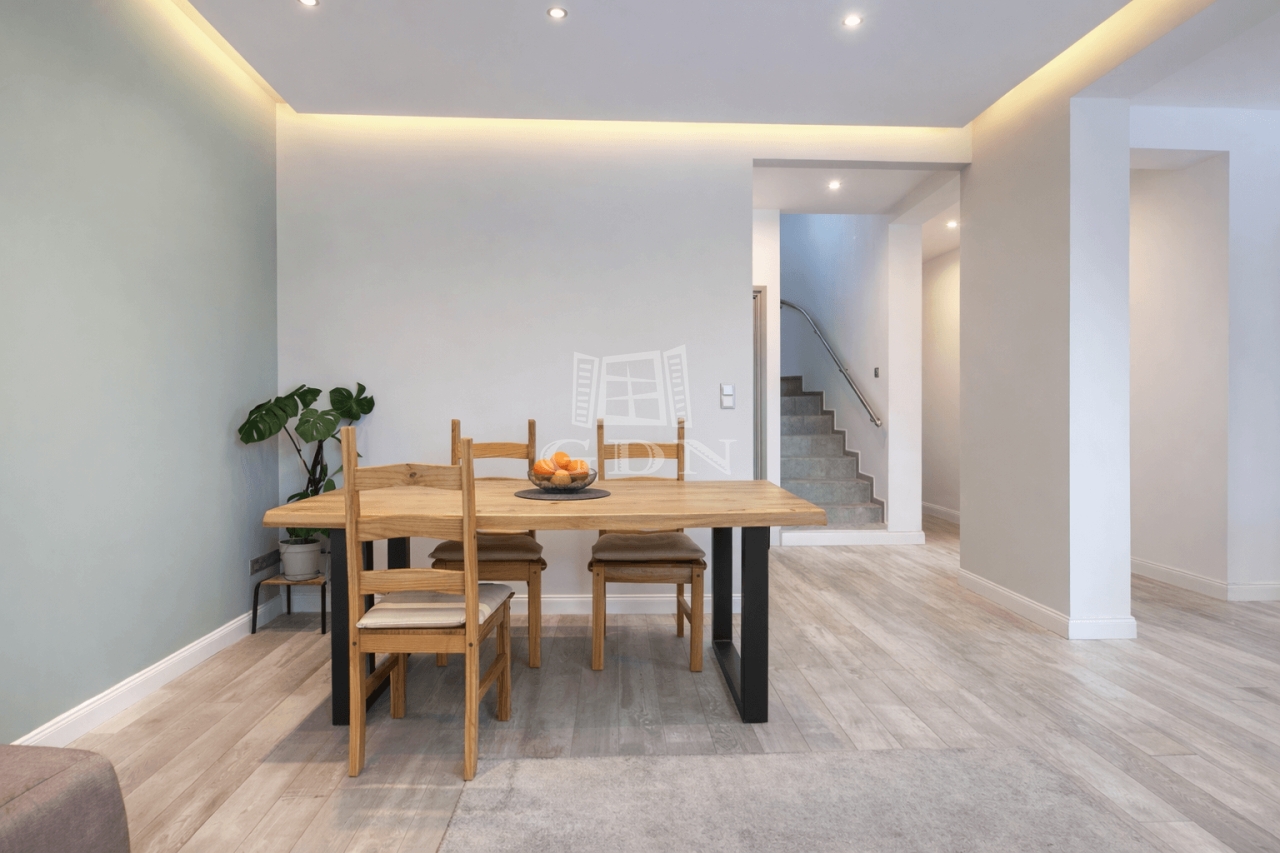 A földszinti a tágas, amerikai konyhás nappali közvetlen terasz és kert kapcsolatos. Ezen a szinten helyet kapott egy külön szoba is, amely ideális dolgozószobának, vendégszobának vagy gyerekszobának.