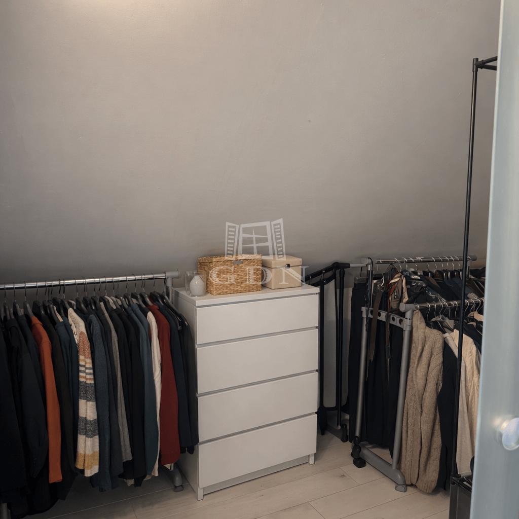Az egyik hálószobához gardróbhelyiség is kapcsolódik, emellett több praktikus tároló is rendelkezésre áll.