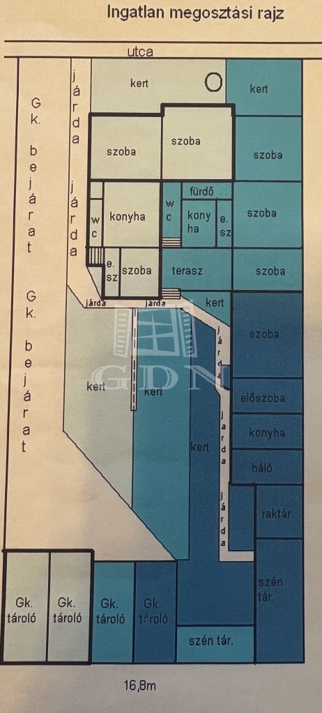 Tartozik hozzá pince, padlás, előkert, sziklakert és kocsibeálló.