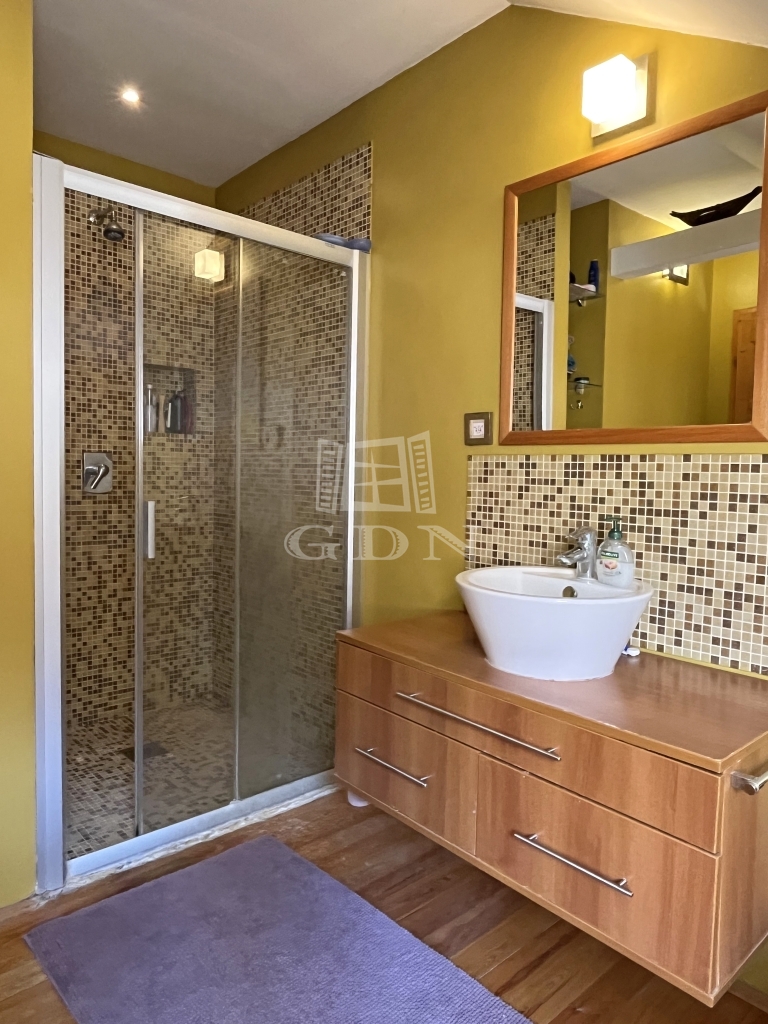 Felső szinten egy második nappali, teakonyha, három szoba, gardrób, valamint egy külön WC és egy nagy fürdőszoba (zuhanyzóval és sarokkáddal) található.