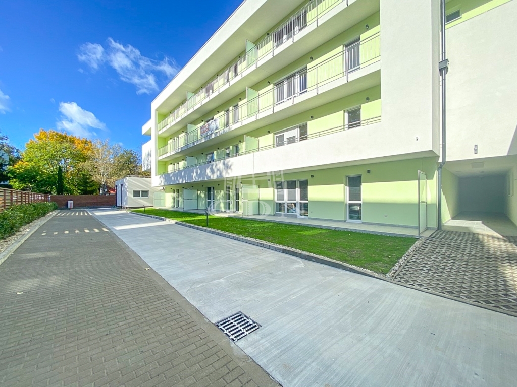 A zöld udvarrész parkosított, öntözőrendszerrel, kamerával és kültéri világosítással is ellátott. Az udvaron felépített különálló épület szolgál a kerékpárok és babakocsik tárolására.