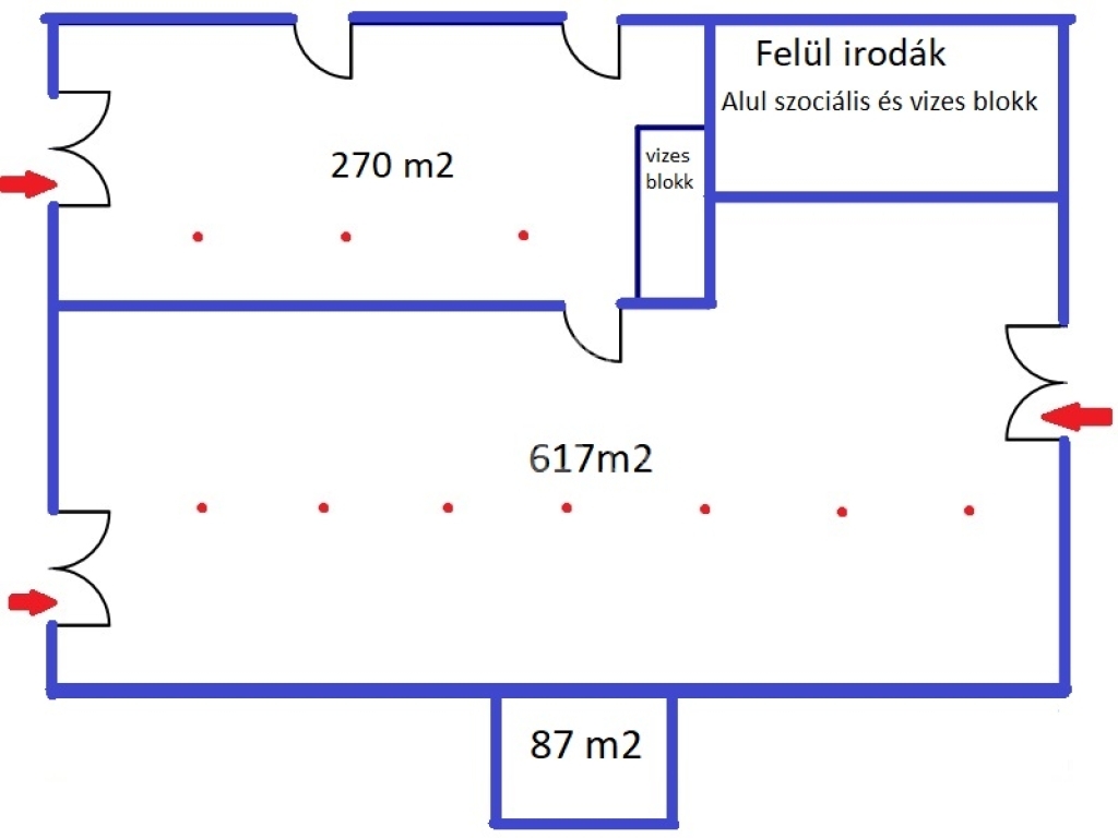 ‣ 3db szintbeli ipari kapu: 2,9m x 3,5m; 4m x 4m
