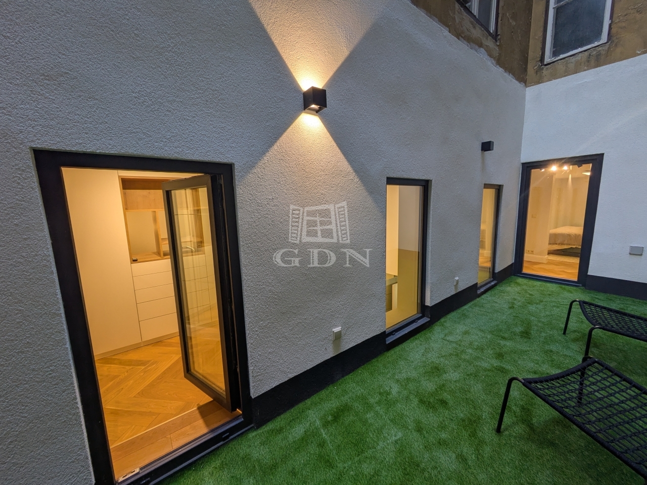 This 104 m², two-level interior apartment with a gallery, featuring a 13 m² terrace /originally a Lichthof/, offers a unique opportunity for those seeking the combination of downtown living and a quiet courtyard location.