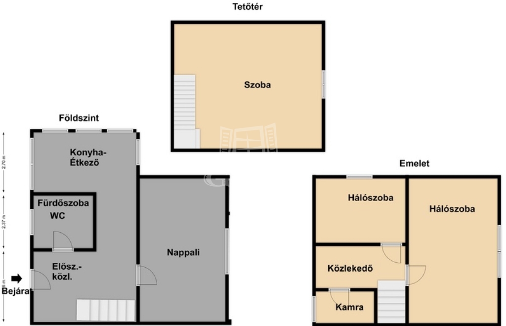 3 szint (2 lakószint + beépített tetőtér)