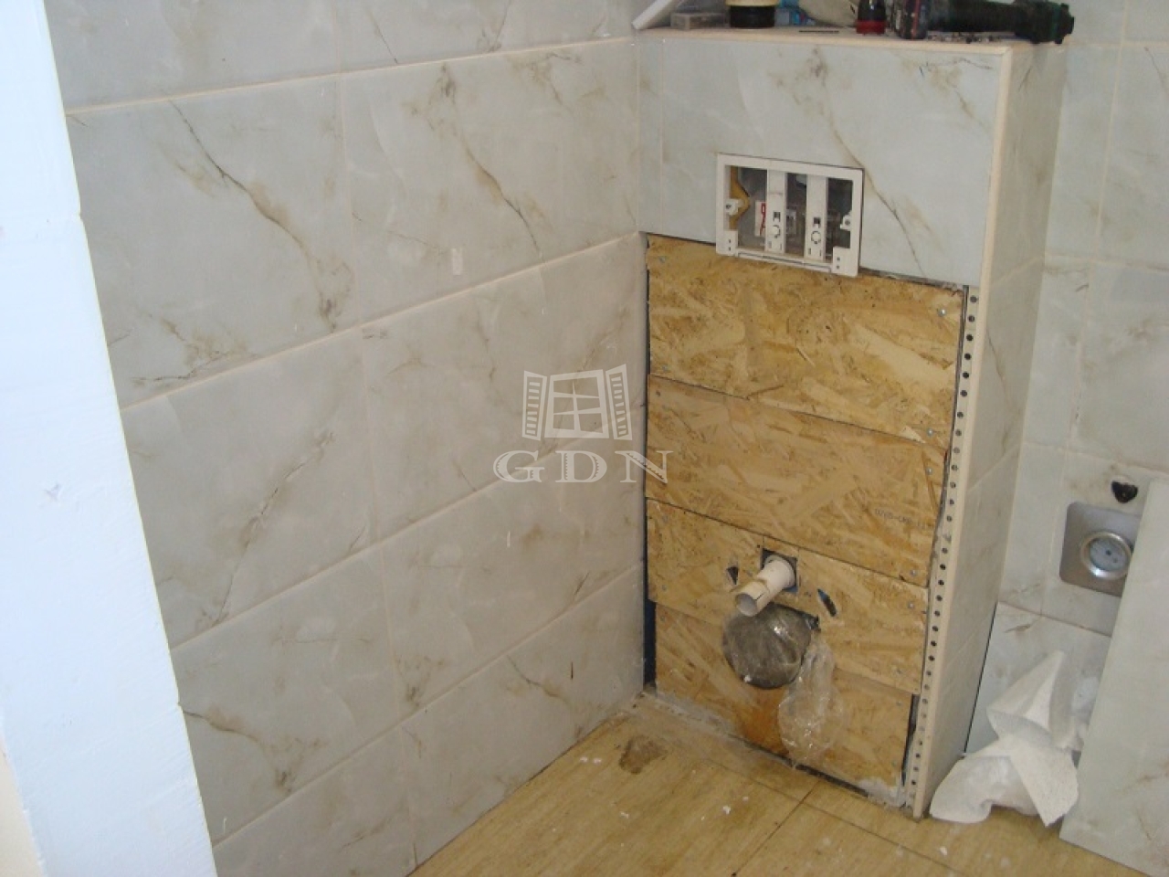 A fürdőszoba burkolata és szerelvényei most kerülnek beszerelésre.