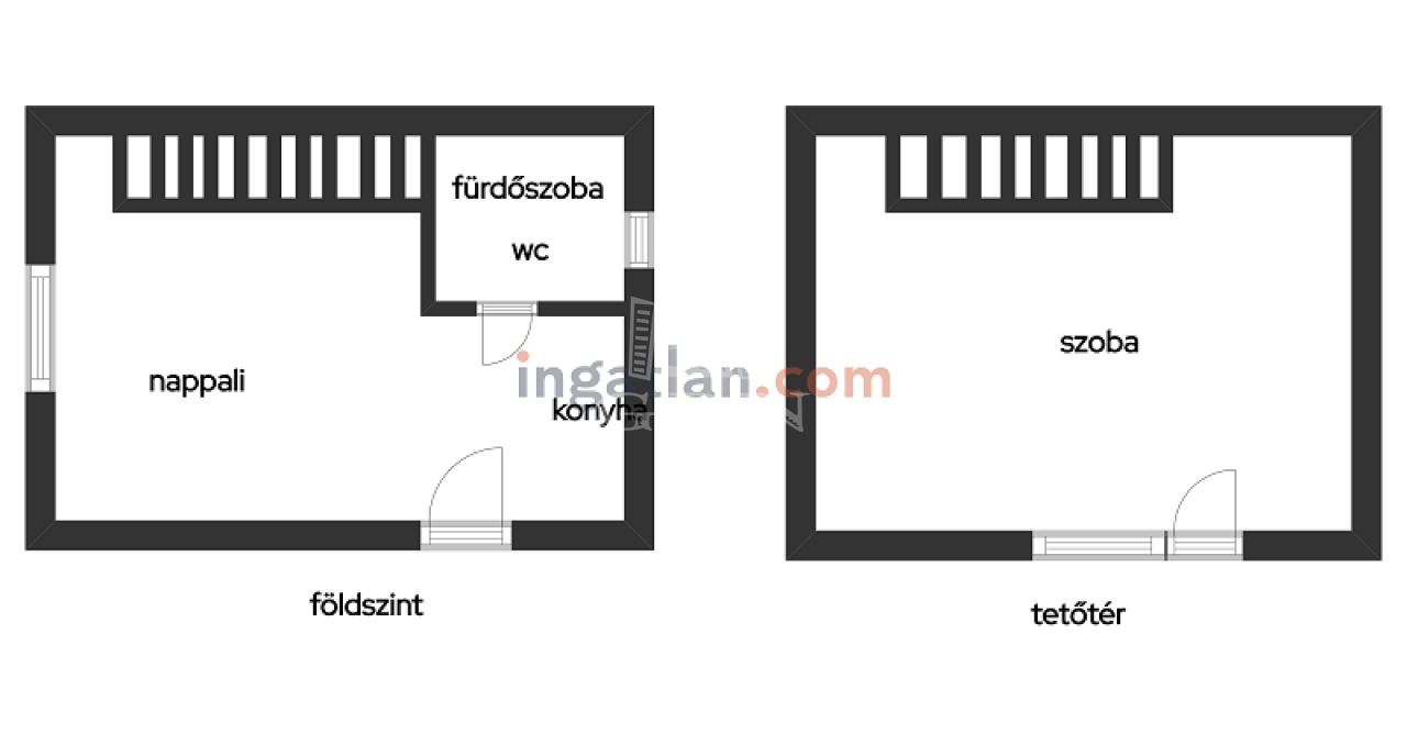 Telekméret: 527 m2, lakás 41 m2, mely két szinten helyezkedik el.