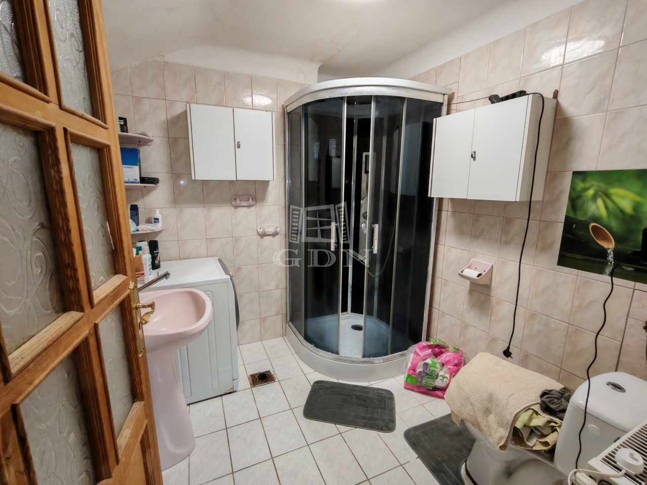 A második épületet régen épült és ehhez lett építve az új. Itt tégla alap található és tégla falazat, melyen fa födém van. De, ami a legfontosabb, hogy nagy összegekért elkezdték a felújítását. Igy kapott egy 10 cm szigetelést, kapott kívülről egy szép kő mintát, az összes ablakot és a bejárati ajtókat újjra cserélték. Az egész tetőt felújították (cserepek, faanyagok cseréje, padlás szigetelés) + erre a tetőre is került napelem. Ellenben a második épületet belülről még fel kell újítani (az egyik szobában elkezdték a gipszkartonozást), ami az új tulaj ízlése alapján valósulhat meg.