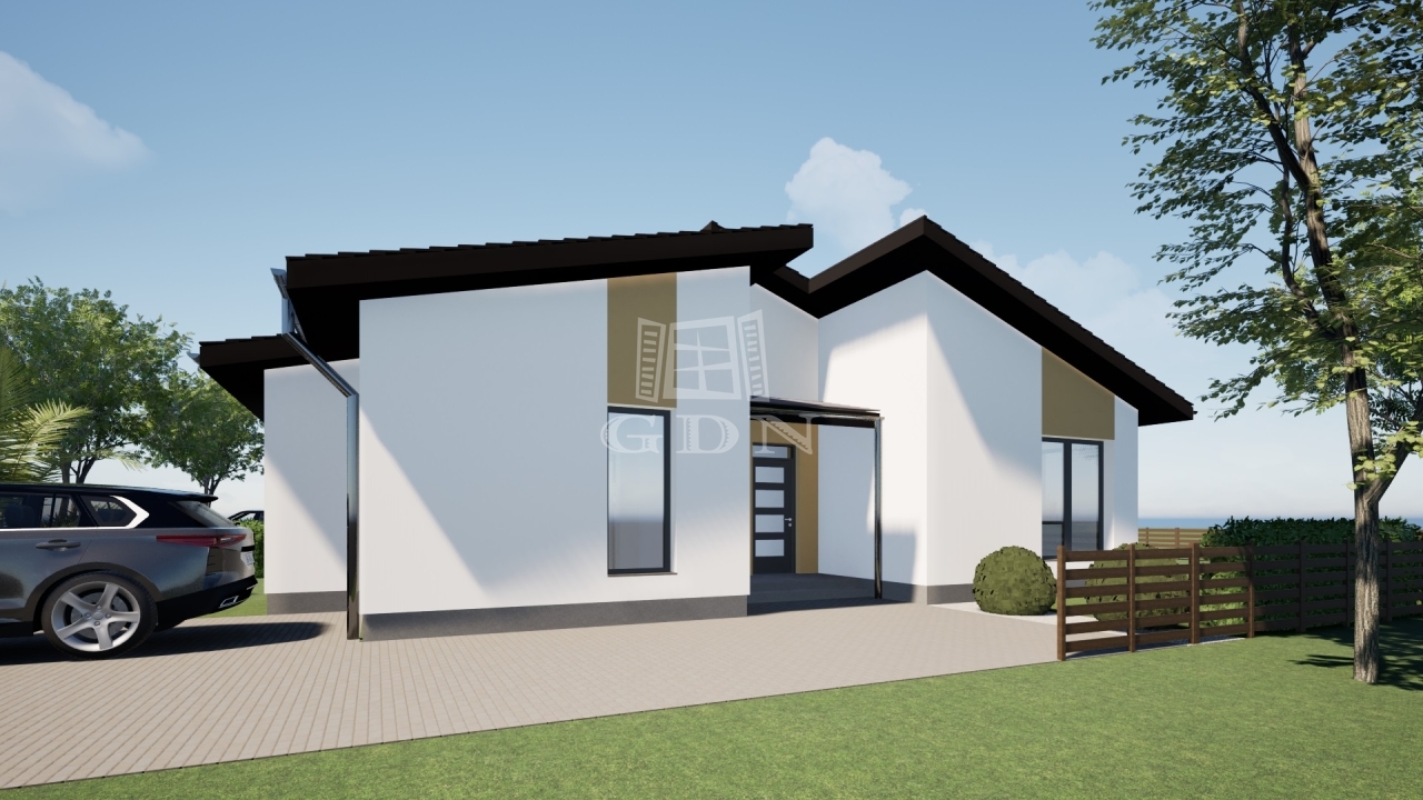 A ház elosztását tekintve: Amerikaikonyhás nappali +kamra, 4 egész szoba, praktikusság miatt fő szempont volt, az élhető terek kialakítása is ezért 9,5-12 m2 nagyságú hálószobák készülnek, továbbá fürdőszoba kialakításra kerül wc-vel ellátva, valamint vendég wc, háztartási helyiség, terasz