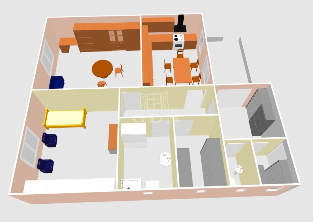 A kertes ház 1970-ban épült, beton alappal, B30-as tégla falazattal, illetve fa födémmel ellátva. A tetőszerkezete sátortető, fedése pedig pala + zsindely, amely pár éve lett ráhelyezve. A ház fűtése gázkazánnal és vegyes tüzelésű kazánnal megoldott radiátoros központi fűtés (mindkettő kazán nagyon jó állapotban van).
