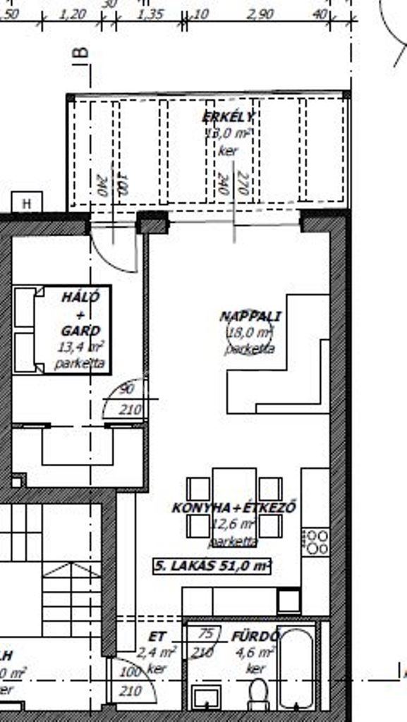 51 m2Alapterület 1 + 1 Szoba
