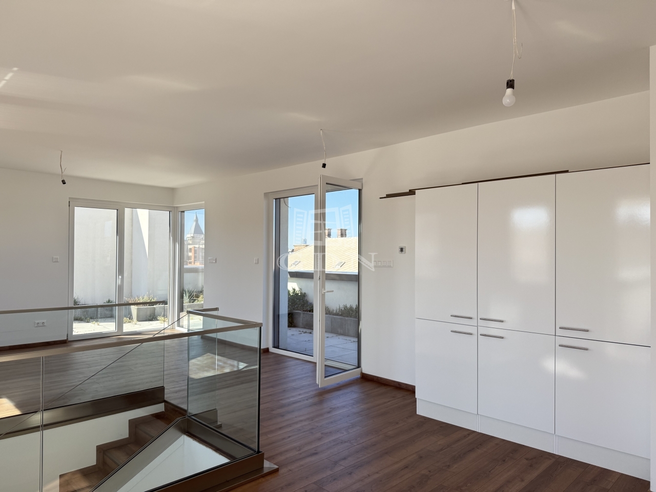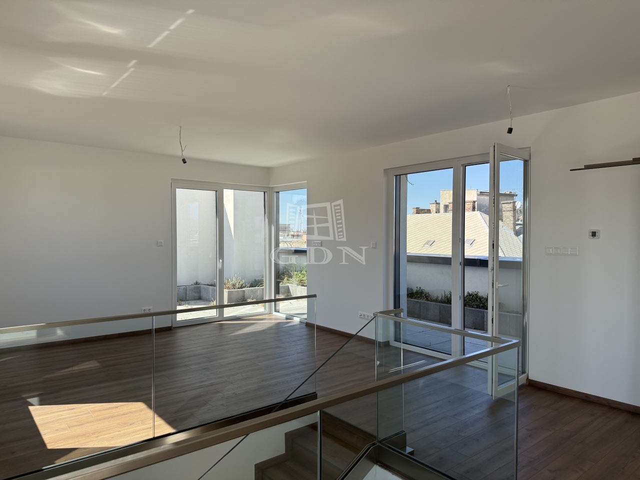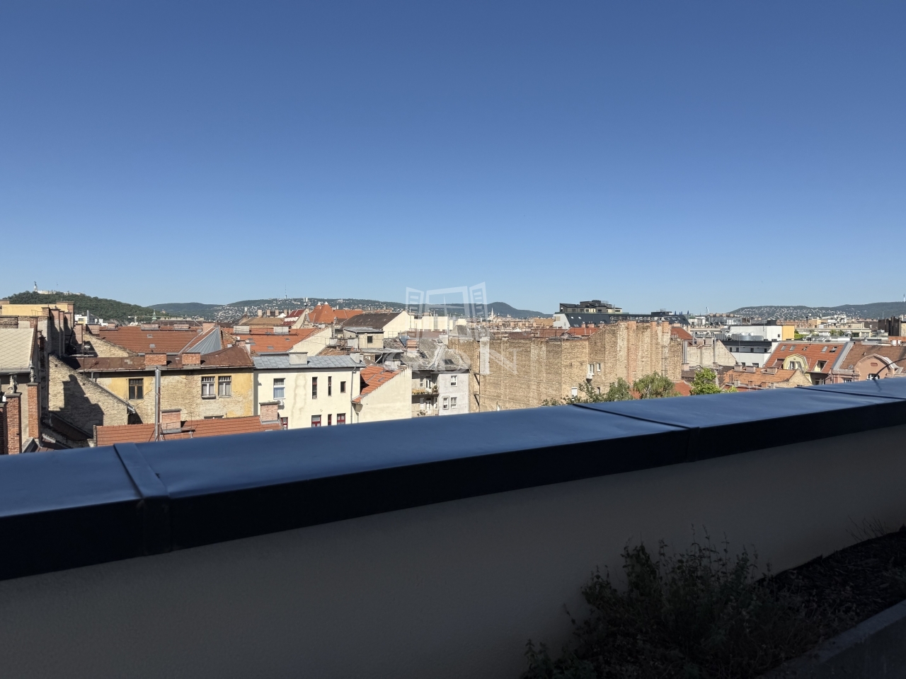 VIII. kerület csendes, mégis központi részén, új építésű ház legfelső szintjén kínálunk megvételre egy belső kétszintes, kulcsrakész, penthouse lakást, páratlan kilátással a Gellért-hegyre és a Hármashatár-hegyre, az alábbi paraméterekkel: