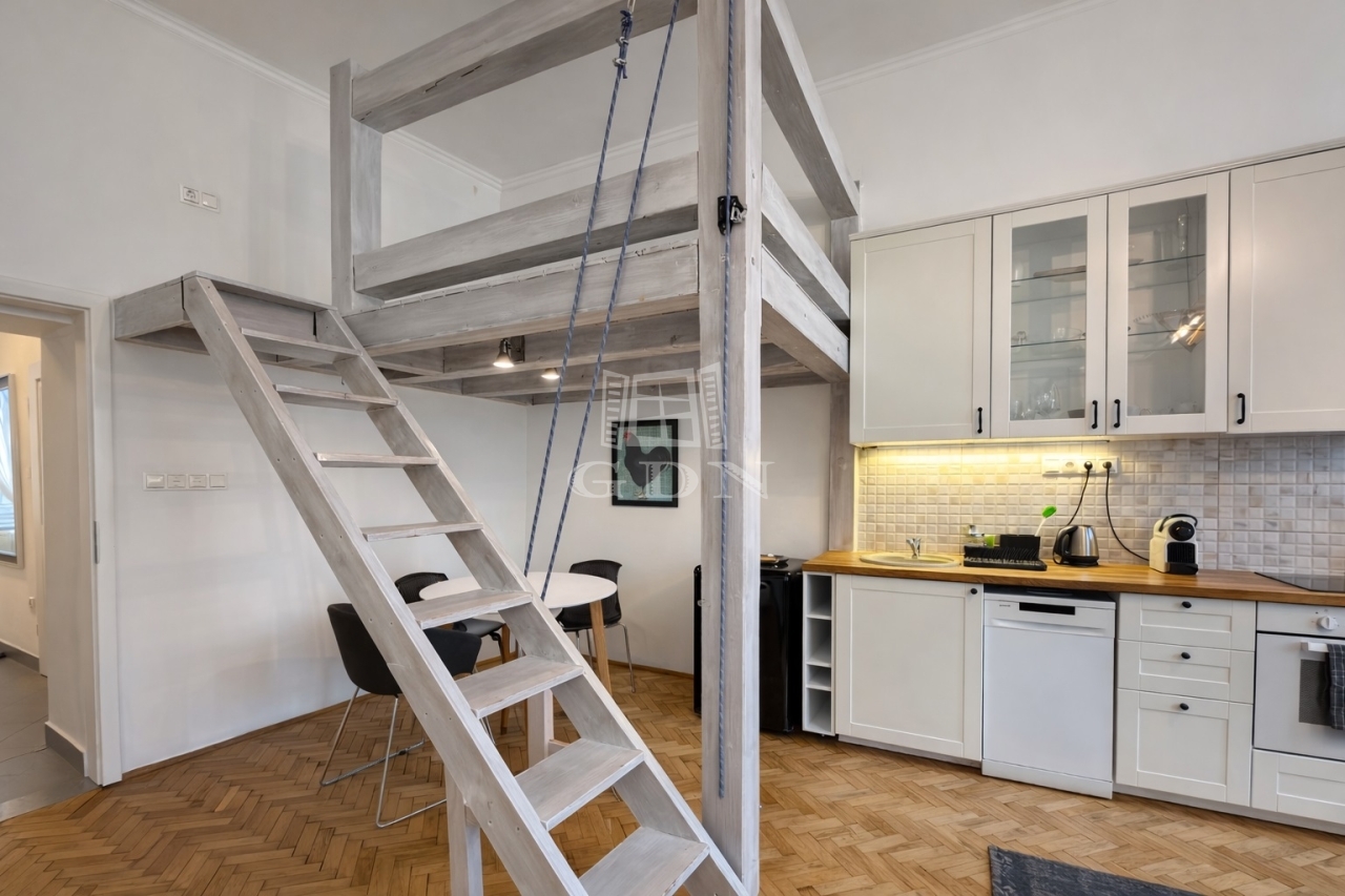 L-004781. Történelmi belváros közelében, műemlék jellegű épületben eladó egy 1. emeleti, 44 nm-es, erkélyes, klimatizált, nappali + 1 szoba + galéria elosztású, 2021-ben felújított téglalakás.