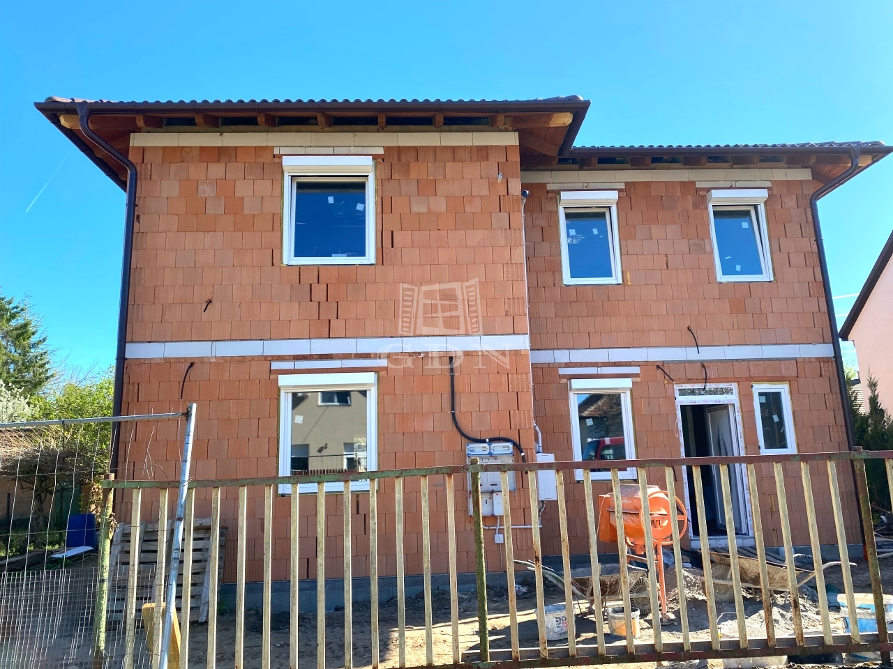 A ház 15 cm-es homlokzati szigeteléssel, háromrétegű nyílászárókkal és sötétbarna beton cserépfedéssel épült. Falazata síkra csiszolt Porotherm téglából készült, amely kiváló hő- és hangszigetelési tulajdonságokkal rendelkezik.
