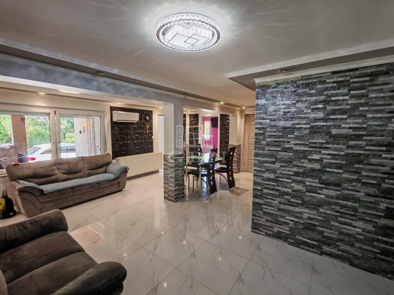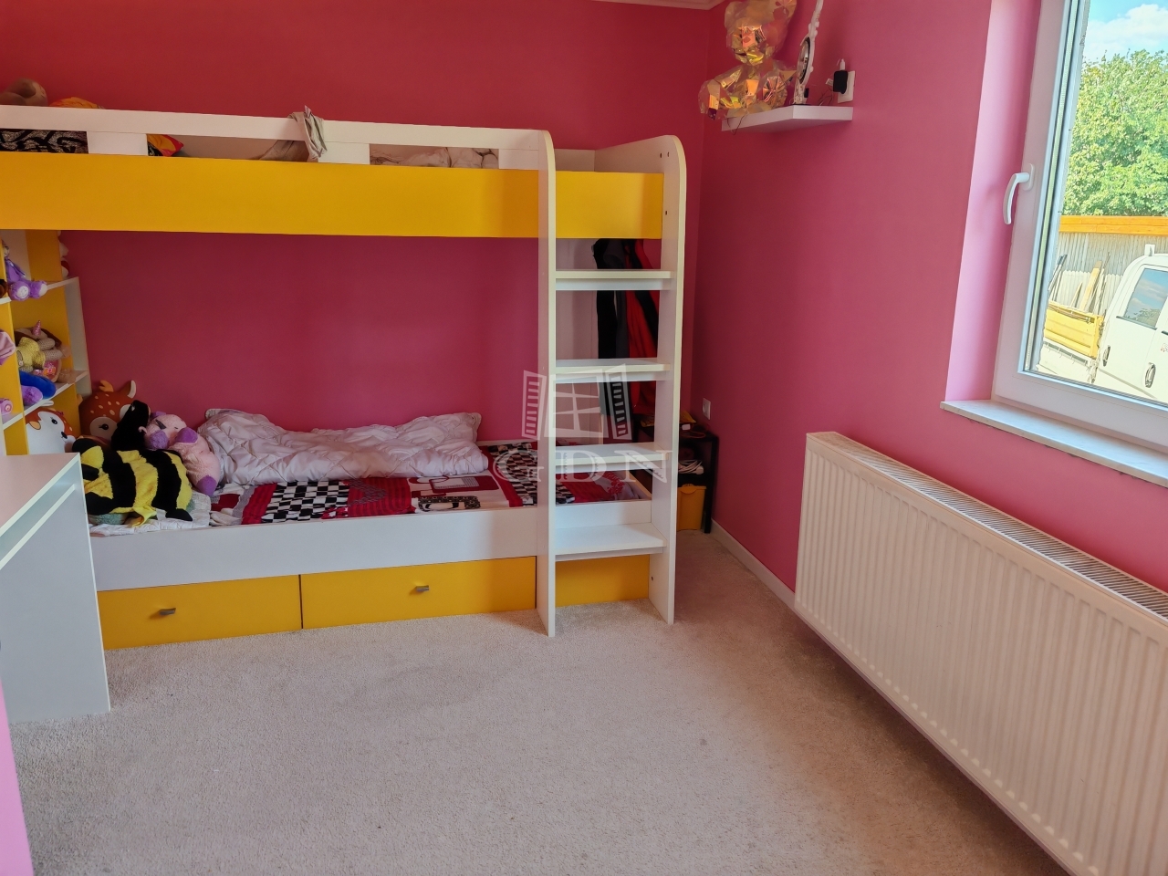 A külső nyílászárók két rétegű műanyag ablakok.