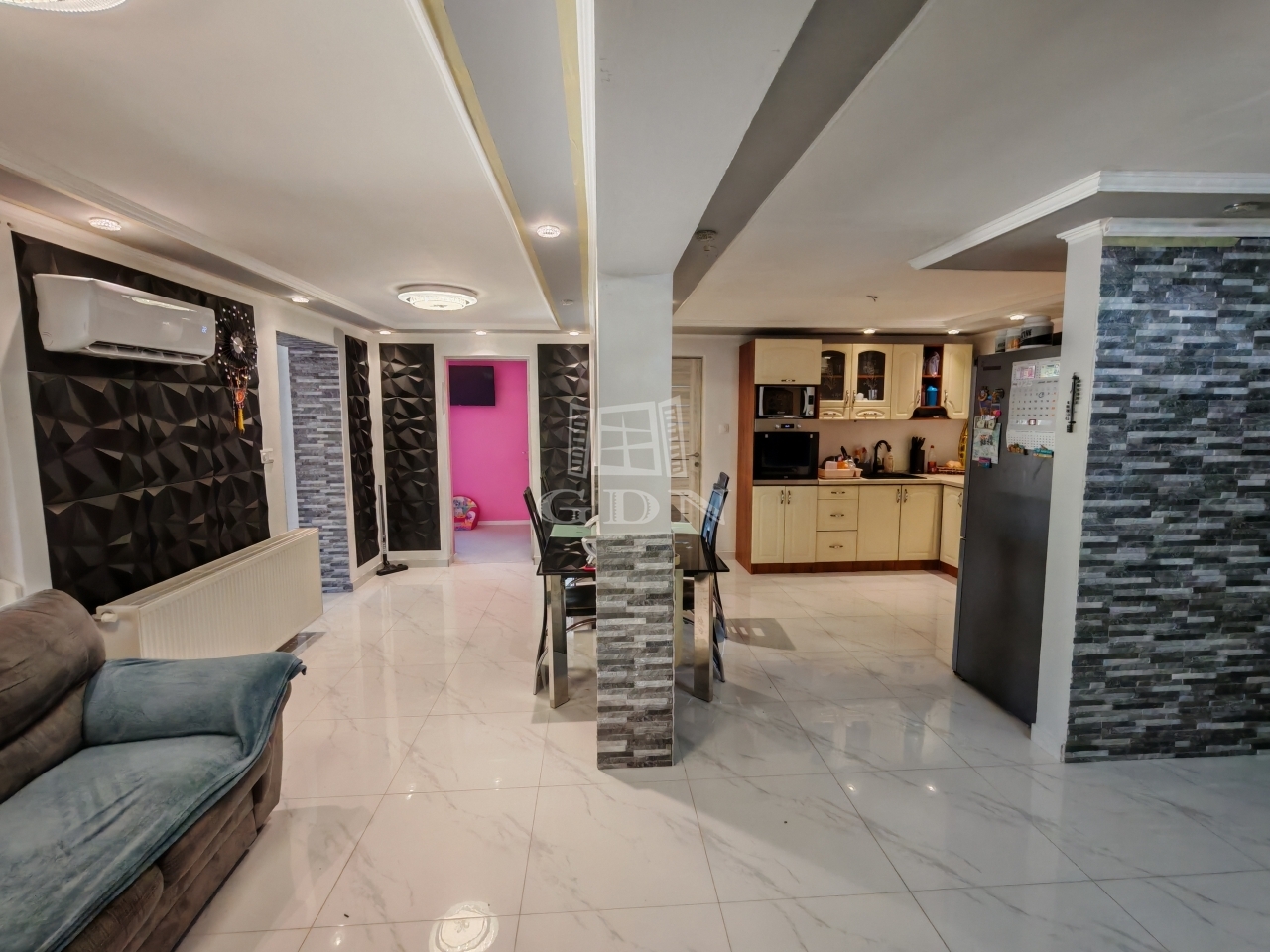 A nappali hűtéséről, és az alternatív fűtésről klíma gondoskodik.