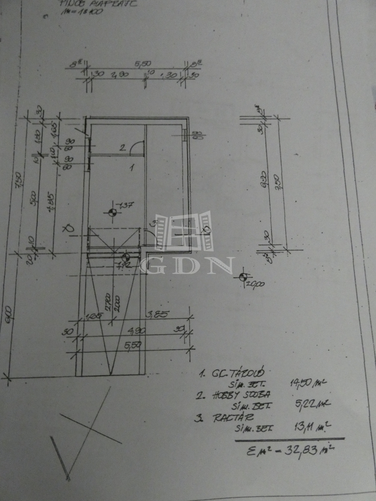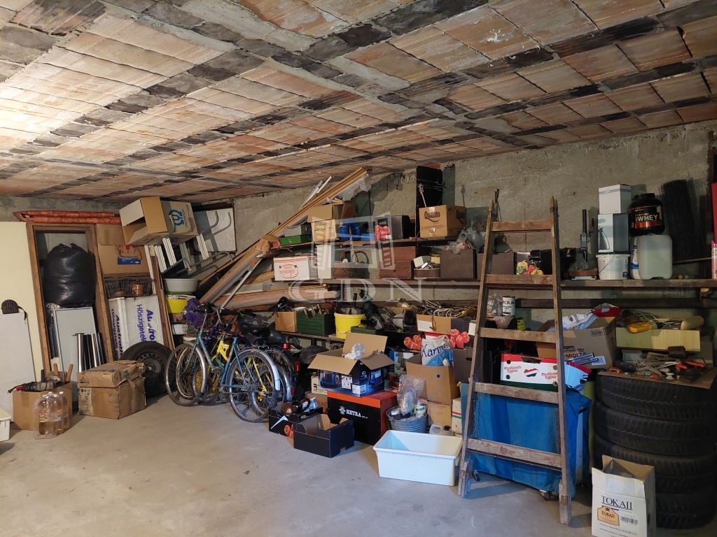 A ház 1991-ben épült, falazata csúsztatott zsalu és tégla. Bár külső szigetelést még nem kapott, a vastag falazatának köszönhetően nagyon jó a hőtartása jelenleg is. Az ingatlan 40 nm alapterületben egyterű szuterén jellegű pince (90-130 cm a talajszinttől). Lehetőség van ellátni természetes fénnyel, garázs, barkács, tároló, hobbi szoba funkciókkal. Itt beton akna lett kialakítva, ahol fúrt kút található.
