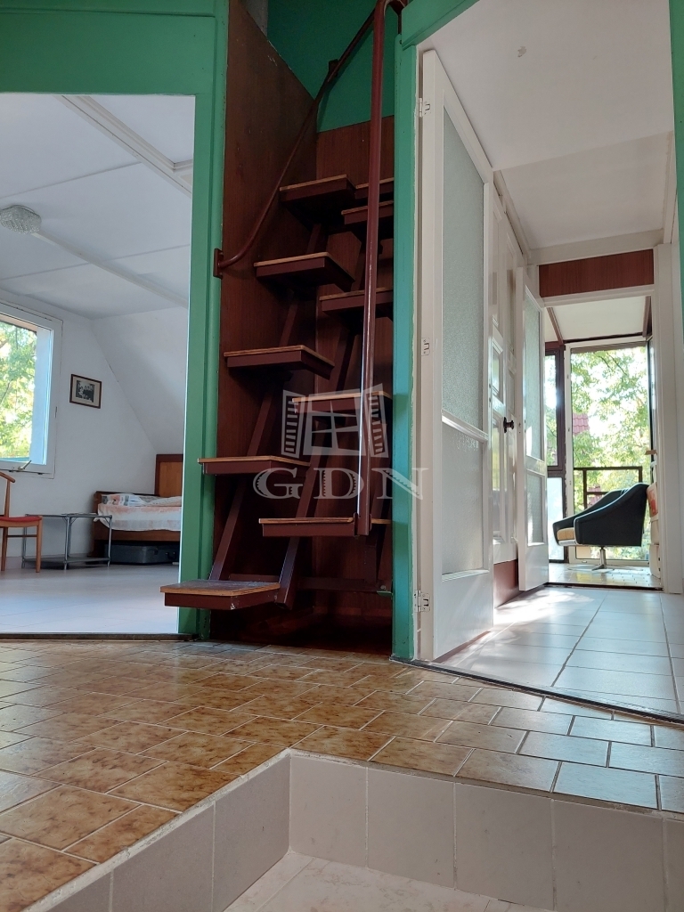 Felette 12 nm manzárd, tinédzser szoba, dolgozó vagy háló, illetve két csapott fallal rendelkező tetőtéri rész, mely akár tárolóként, vagy hálóként funcionálhat.