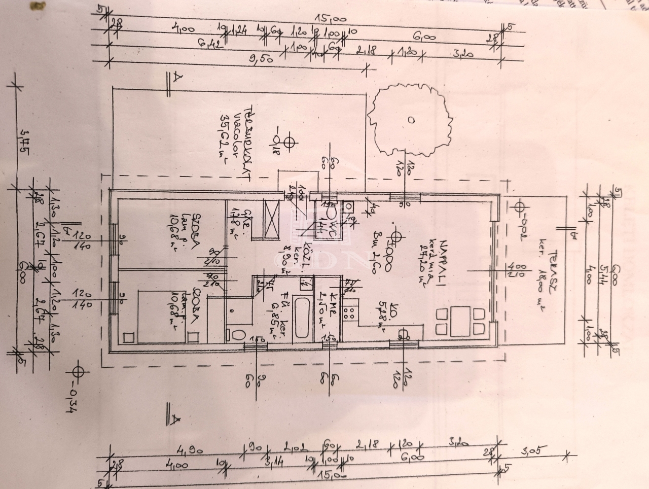 - 32 nm-es amerikai konyhás, étkezős nappali 18 nm-es fedett terasz kapcsolattal
