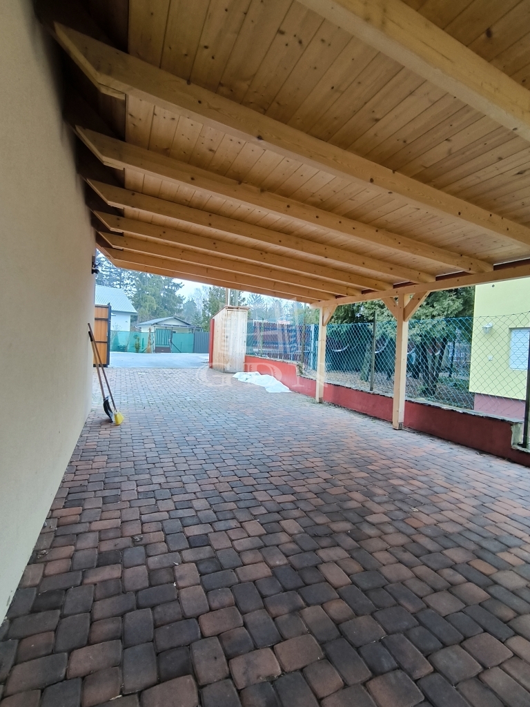 - 35 nm-es térkövezett fedett autóbeálló van a ház mellett, de ezenkívül is van beállási lehetőség