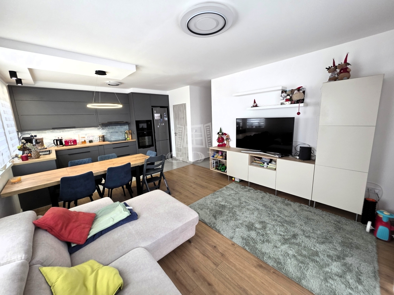 - A tágas nappali–amerikai konyhás tér a lakás valódi központja, amely gépesített konyhával várja új tulajdonosát – tökéletes helyszín a mindennapokra és a vendéglátásra egyaránt.