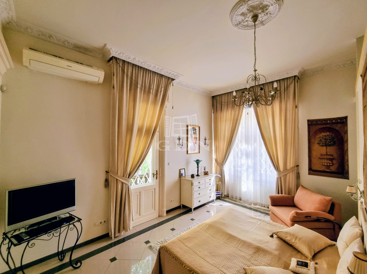 Az 1918- ban épült villa historizáló - eklektikus stílusban épült, az építész annak idején a házat saját magának tervezte, napjainkban folyamatosan karbantartott, állapot megőrzése, illetve javítása érdekében a társasház folyamatosan törődik vele, pályázatokon indul! Eladó ingatlanunk a magasföldszinti szinten helyezkedik el, (alaprajzon a lilával körbejelölt) egyik különlegessége, hogy a házba egy tekintélyes 33 nm-es külső teraszról jutunk be, majd a lakást egy zárt lépcsőházból közelíthetjük meg, ami a szomszéd ingatlannal kizárólagos használatban van.