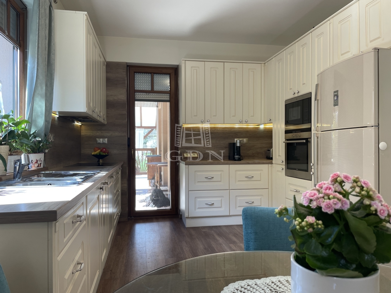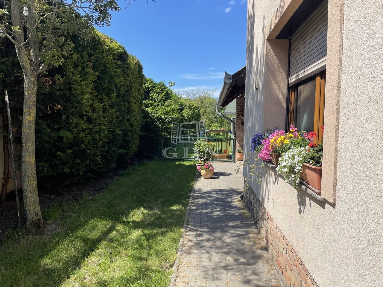 Az udvaron fúrt kút található és automata öntözőrendszer gondoskodik a zöldellő kertről.