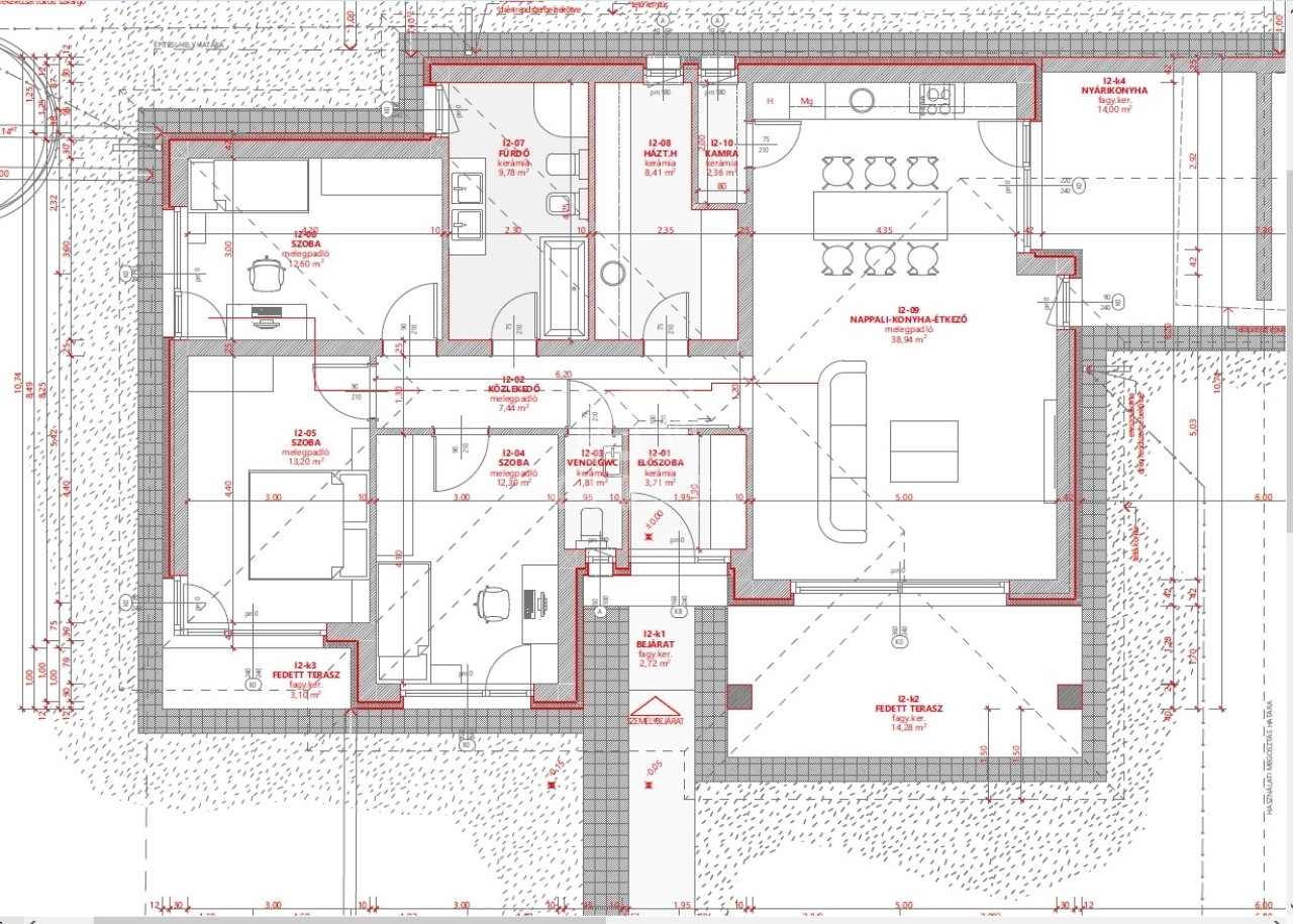 30 cm vastag PTH tégla falazat, 12 cm grafitos hőszigeteléssel