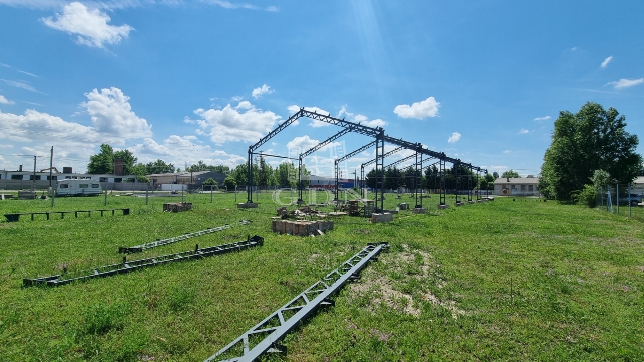 A telek hasznosítására és beépítésére koncepcióterv készült, ennek kacspán egy 612m2 alapterületű acélvázas csarnokszerkezet már megépítésre került. A szerkezet teljesen új, minden építési dokumentációval rendelkezik. Igény esetén (kivitelezői szerződéssel) az új tulajdonos számára (igényeire alakítva) kulcsra készen is átvehető. A meghirdetett vételár csak a telket és a felállított vázszerkezetet tartalmazza.