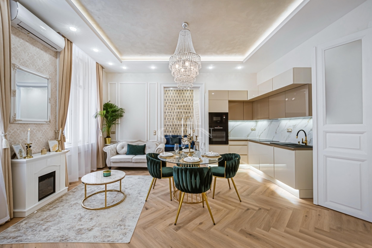 Budapest szívében, a Lovag utcában kínálunk eladásra egy teljes körűen felújított, luxus komfortú lakást, amely tökéletes harmóniát teremt a modern technológia, a minőségi anyagok és a tágas, természetes fényes terek között.