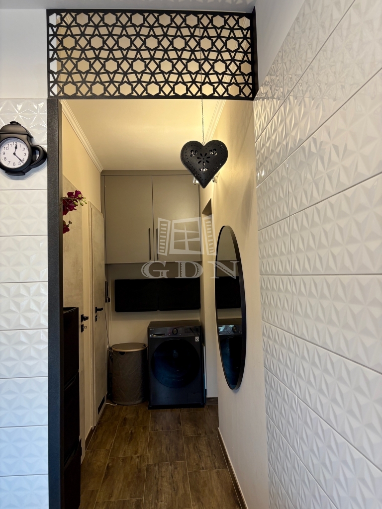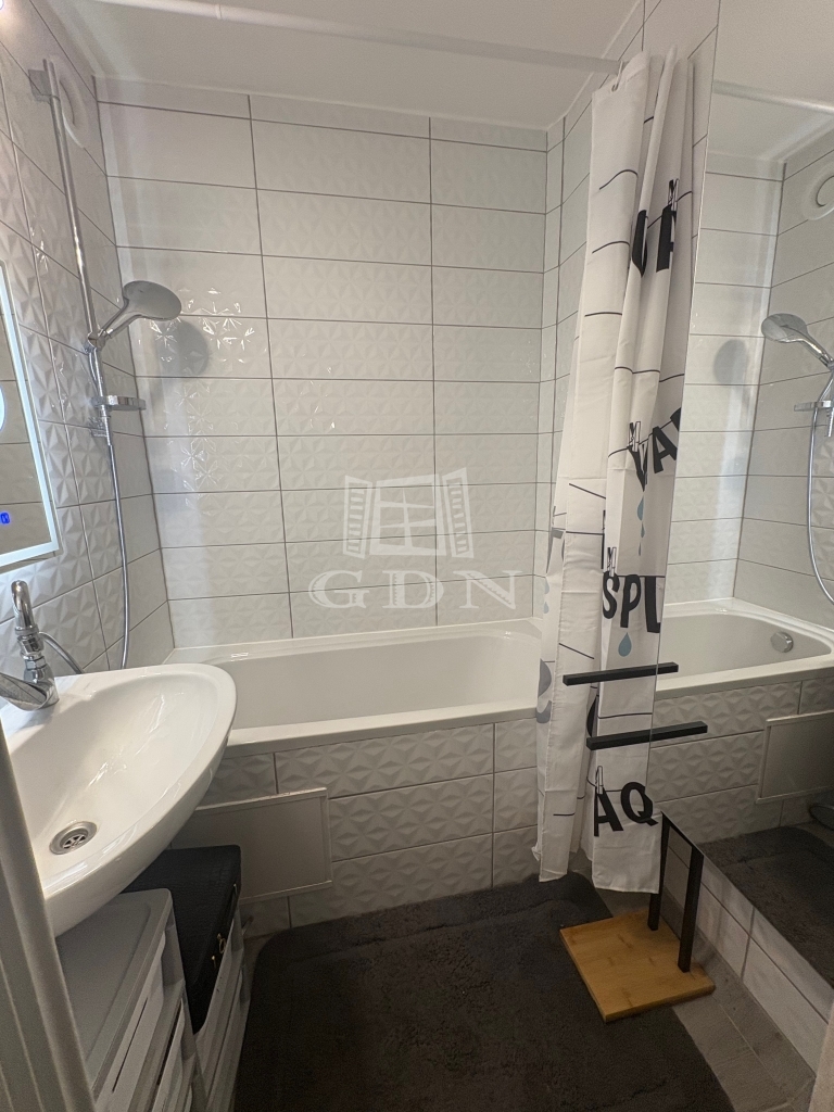 Fürdőszoba teljes felújítása mellett a vízvezeték átépítésre került, ezért a mosógép nem foglalja a helyet, a gardrobe falra került kivezetésre.