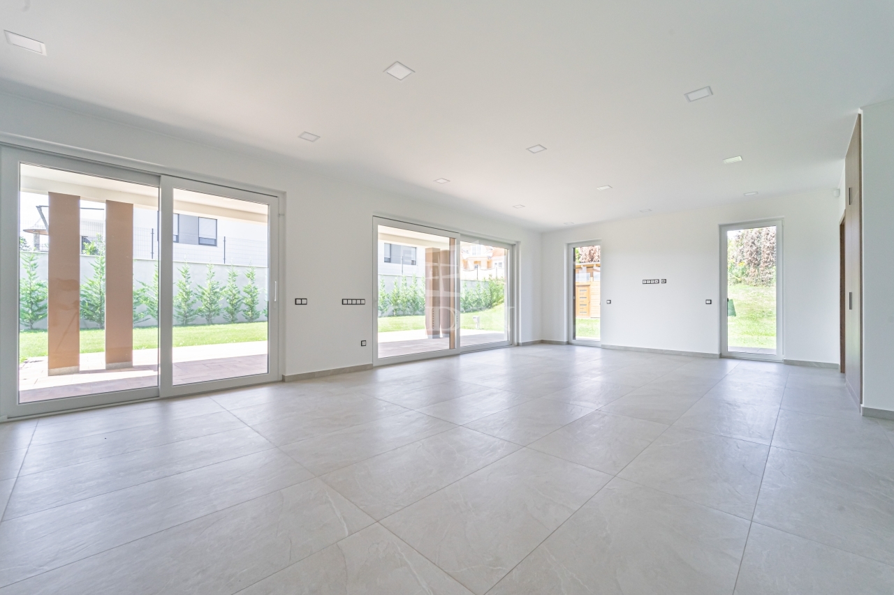 A családi ház padló fűtéssel és mennyezet hűtéssel rendelkezik, minden helyiség hőmérséklete egyedileg szabályozható.