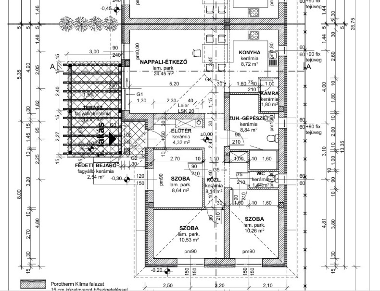 A ház 30-as xtherm téglából épült, szigetelése 15cm, Bramac tetőcserép fedéssel.