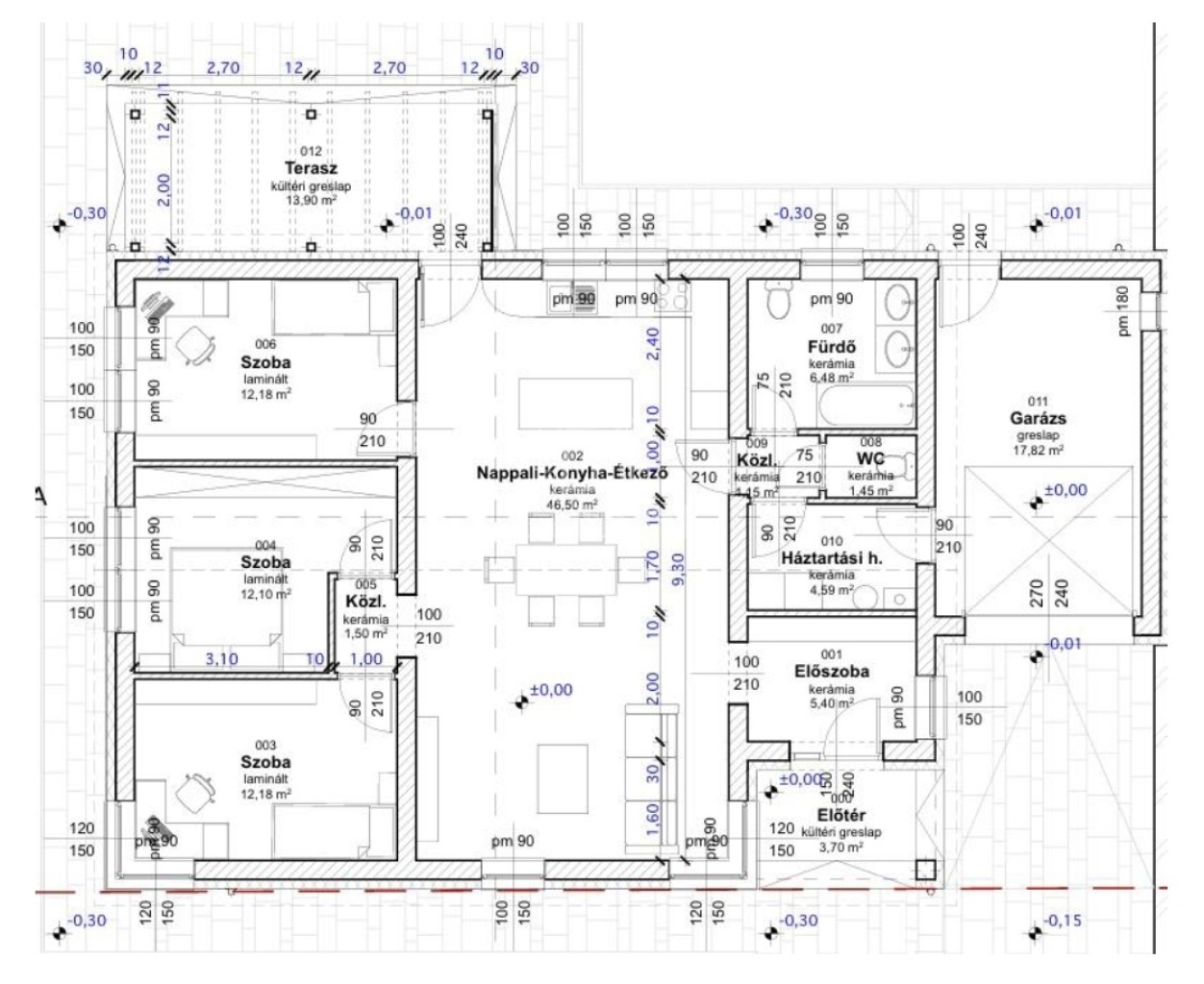 Az új építésű családi ház várhatóan 8 hónapon belül kerül átadásra, mely korszerű hő takarékos építészeti megoldásokat alkalmazva készül el. A falazata 30-as téglából épül, mely 15 cm-es EPS homlokzati hőszigetelést kap. A födém szerkezete 15 cm-es ásványszálas hőszigetelésű lesz, így az egész épület energetikai szempontból A++ kategóriájú.