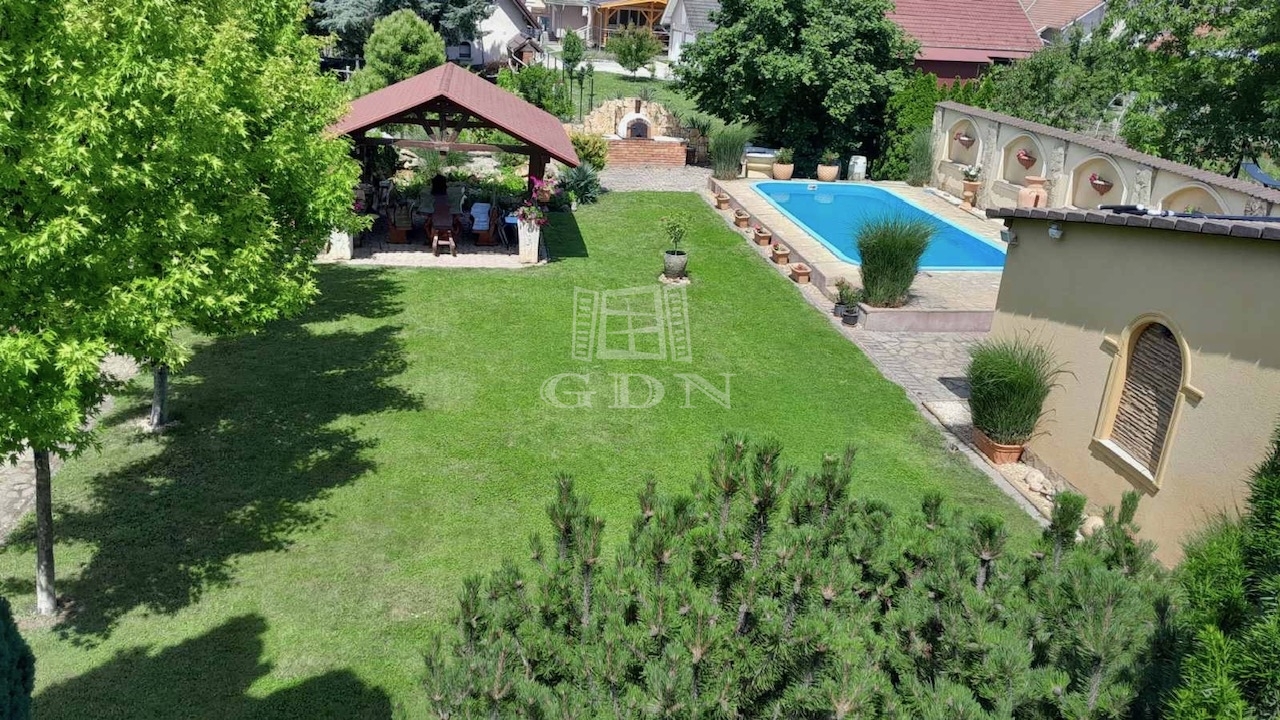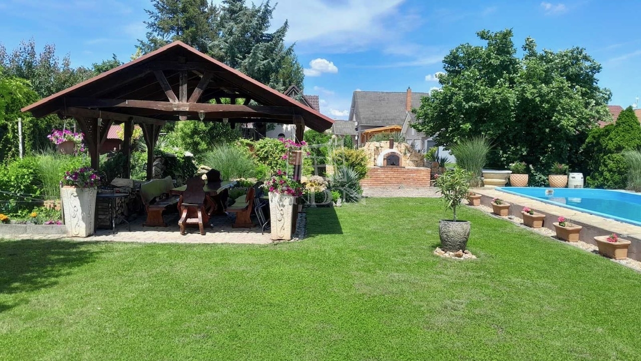 Szépen parkosított kertben, kiépített úszómedence található tisztító, vízforgató rendszerrel ellátva. Továbbá kis hangulatos halastó, pavilon, grillező, kemence helyezkedik el.